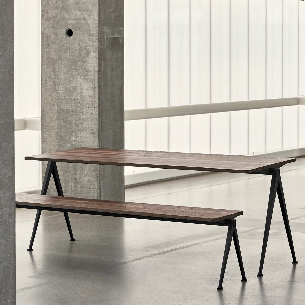 La Pyramid table se décline en différentes variantes. En plus de la Pyramid collection, composée de bancs et de tables, la chaise Result correspondante a également été relancée.