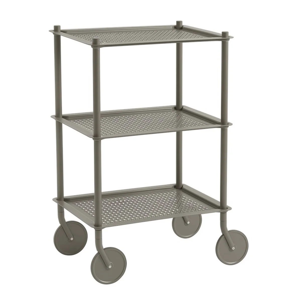 Le Flow Chariot d'appoint de Muuto apporte le concept de design fonctionnel dans un contexte moderne : ses étagères rainurées en métal gaufré lui confèrent une expression contemporaine, tandis que la flexibilité de ses roues permet à ses utilisateurs de le déplacer d'une pièce à l'autre.