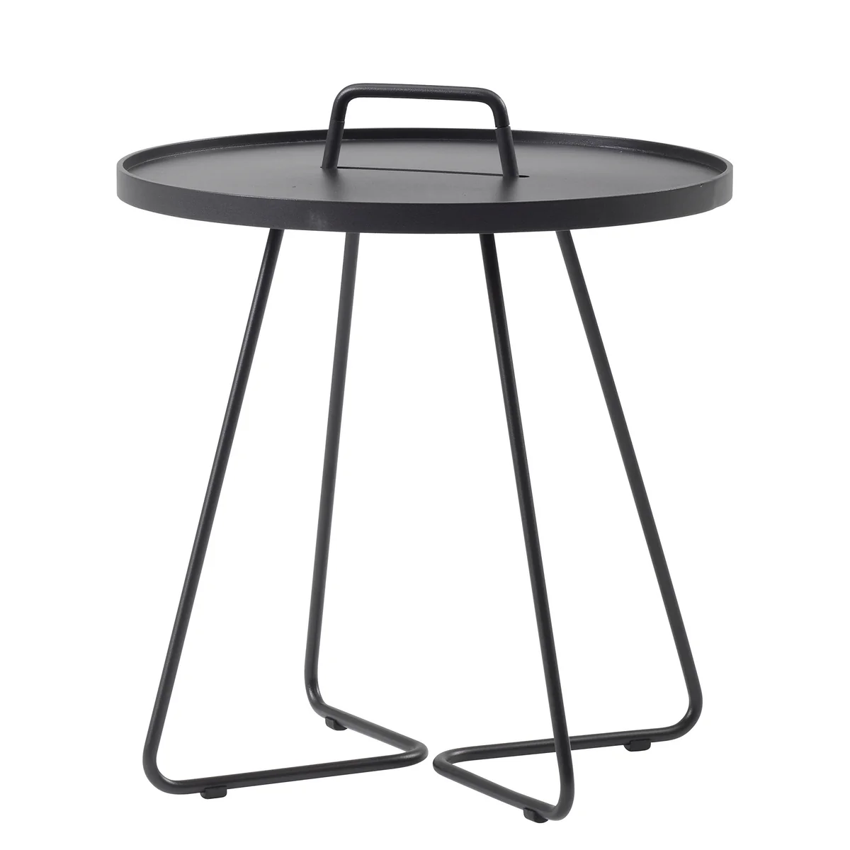 On-the-move La table d'appoint Outdoor de Cane-line a été conçue par Strand + Hvass et est une table d'appoint fonctionnelle et élégante pour l'intérieur et l'extérieur. Le duo de designers a reçu en 2012 le très convoité prix de design "Interior Innovation Award" pour cette création.