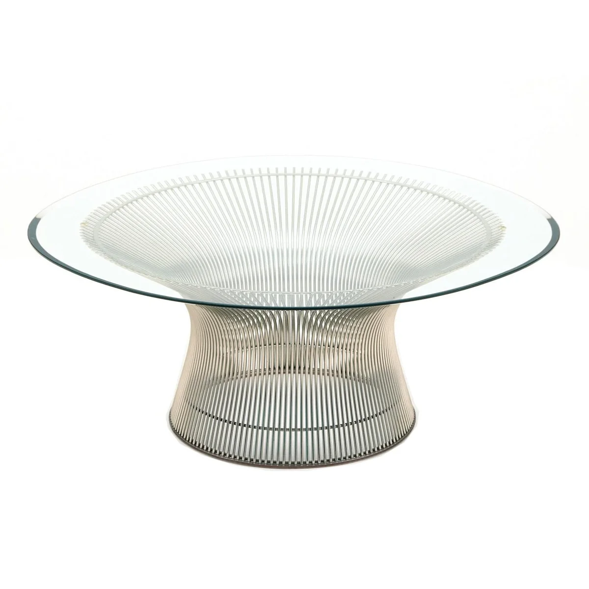 La table basse Platner de Knoll, conçue par Warren Platner, est une pièce de design emblématique qui se distingue par son élégante combinaison de nickel poli et de verre cristal clair. La table ronde symbolise la célèbre technique de Platner consistant à plier et à souder artistiquement des tiges d'acier, créant ainsi une base filigrane et sculpturale qui allie stabilité et légèreté. Le plateau en verre lisse met habilement en scène le design complexe et crée un jeu d'ombre et de lumière fascinant. Une pièce intemporelle pour chaque pièce.