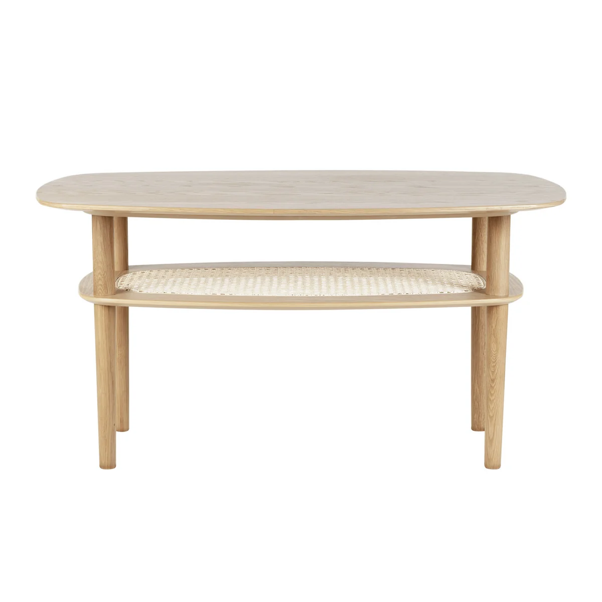 Fabriquée en chêne de qualité supérieure et complétée par une tablette légère en tressage viennois naturel, la table basse allie l'artisanat et le design. Together table basse allie qualité artisanale et légèreté visuelle. Les angles légèrement arrondis et les pieds discrètement en retrait font écho au design danois moderne mid-century et augmentent le confort au quotidien.