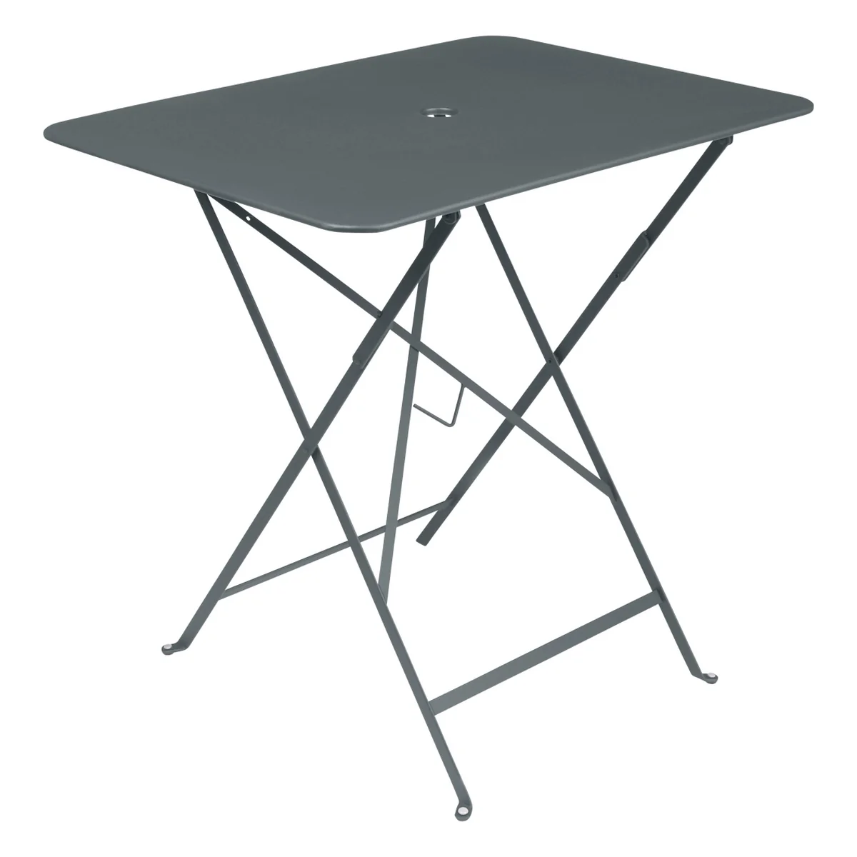 La table de jardin Fermob de 77 x 57 cm dispose d'un petit évidement au centre du plateau de table qui sert de support pratique pour le parasol. Les parasols avec un support de Ø 41 mm maximum peuvent être encastrés dans le plateau de table.