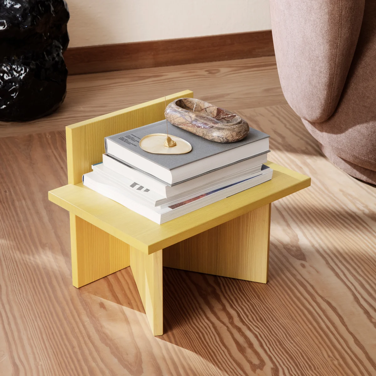 Le tabouret Oblique by Ferm Living, qui révèle la fascination pour l'artisanat japonais, se compose de quelques éléments simples qui forment ensemble un objet sculptural. En tant que porte-revues, table d'appoint ou tabouret pour les petites choses, l'Oblique s'intègre bien dans différentes pièces et peut être utilisé de nombreuses façons.