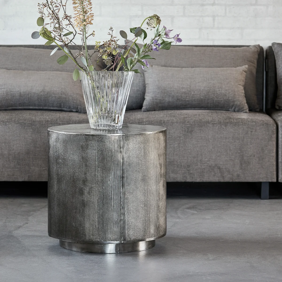 La table basse Rota table d'appoint de House Doctor apporte une touche d'élégance dans le salon. La table en aluminium est dotée d'une finition qui plonge le salon dans une merveilleuse chaleur et crée un jeu de lumière enchanteur lorsque les rayons du soleil dansent dessus. La surface pas tout à fait lisse confère à la table un caractère marquant.