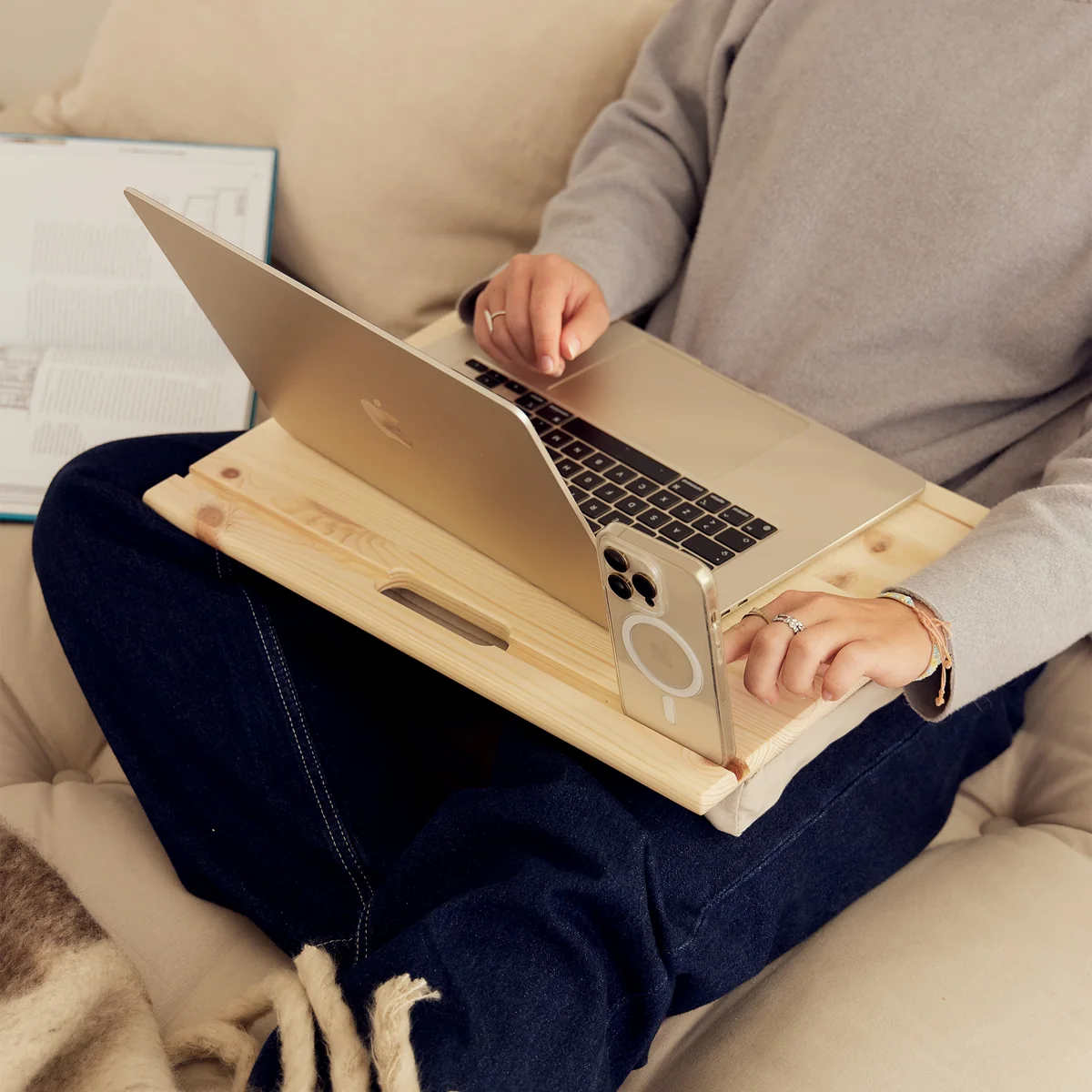 Un nouveau meilleur ami pour des heures de détente ! Que ce soit sur le canapé, dans le lit ou dans le fauteuil, cette table multifonctionnelle assure un soutien et un soulagement optimal pendant le travail. Le plateau de la table offre de la place pour ton ordinateur portable, tandis que la rainure de support intégrée maintient ton smartphone ou ta tablette en toute sécurité dans la position de lecture et d'utilisation parfaite. Le coussin moelleux, rempli de perles EPS, s'adapte de manière flexible à ta position assise et assure ainsi un confort maximal. BFF allie simplicité et fonctionnalité dans un design intemporel, ce qui te permet d'emporter ton divertissement ou ton travail partout avec toi.