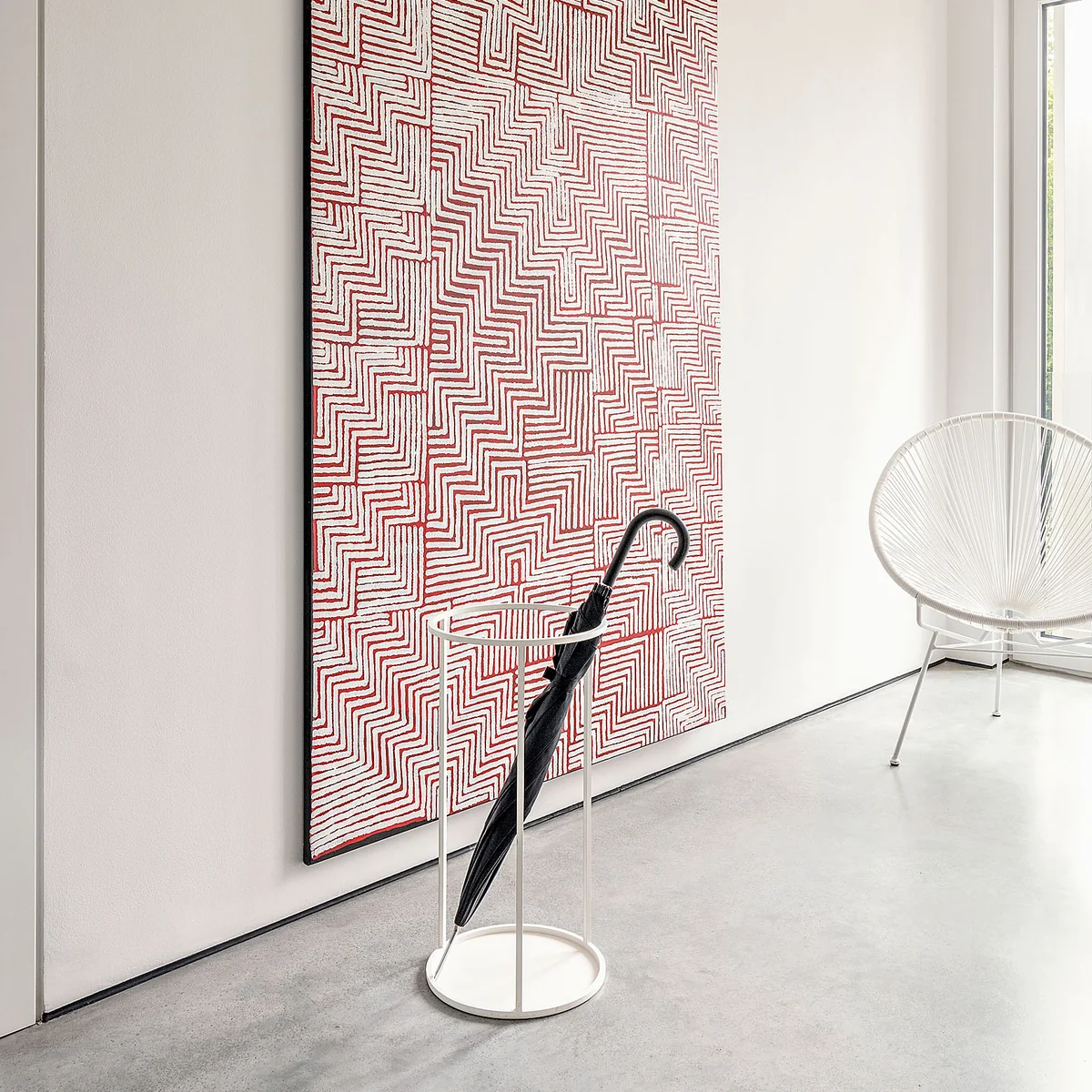 Le porte-parapluies est disponible en forme carrée ou ronde et peut aussi bien accueillir les parapluies dans l'entrée que servir de table d'appoint dans le salon. Rack est disponible en différentes versions revêtues par poudre qui s'intègrent discrètement dans l'entrée. La version en chrome brillant peut être utilisée uniquement comme porte-parapluies.