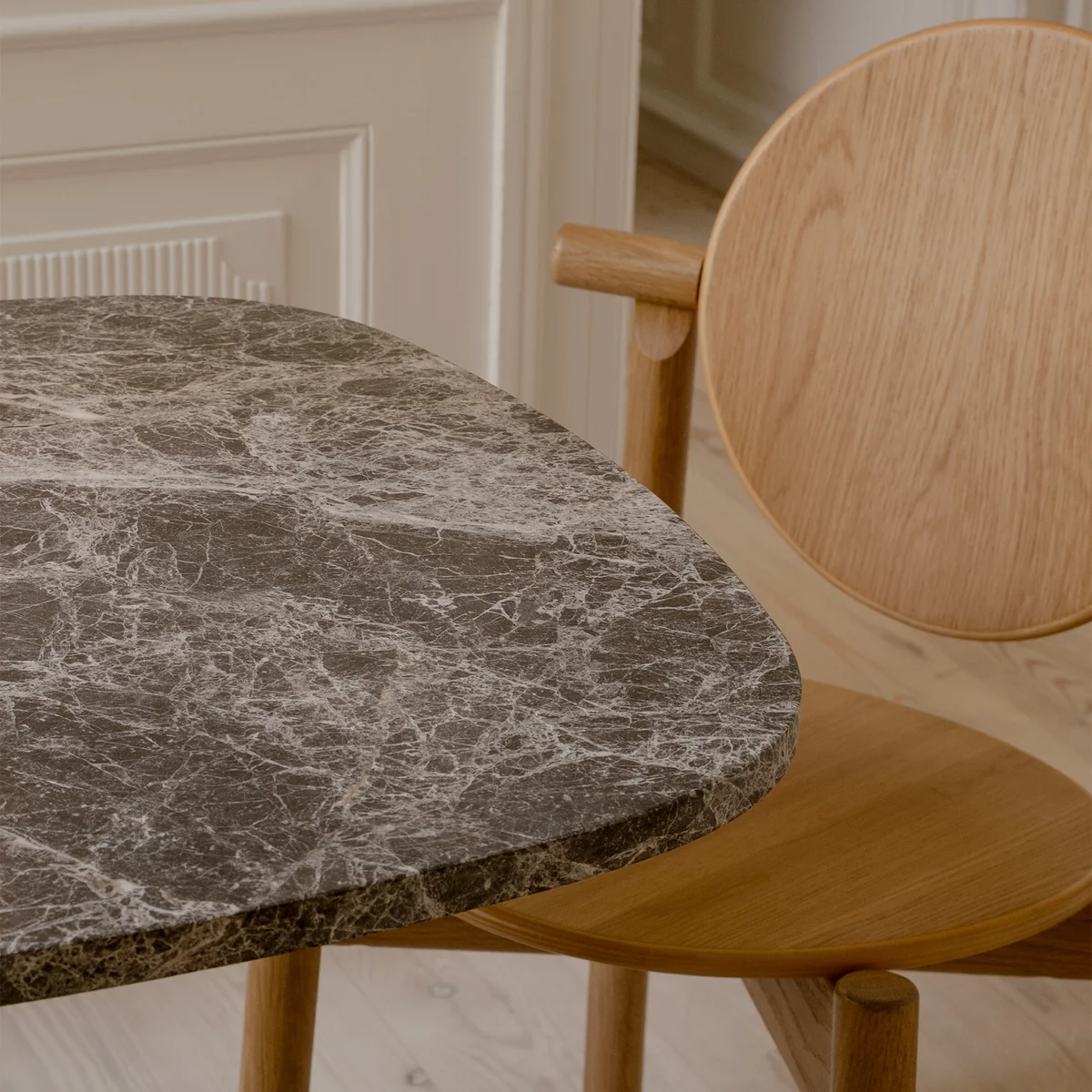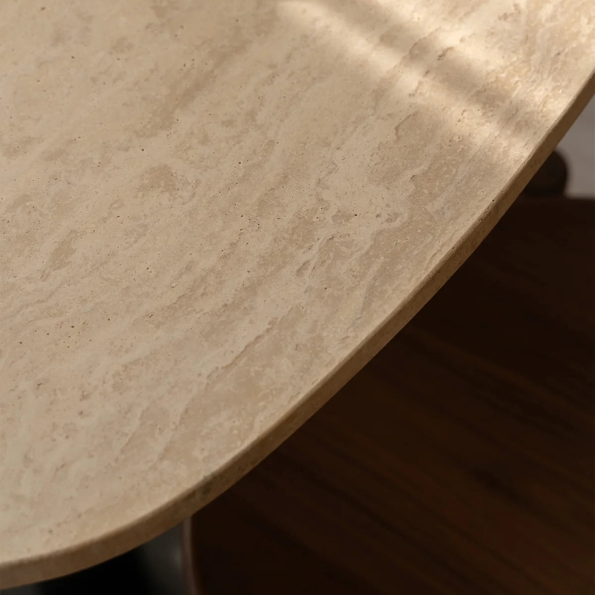 Fabriquée avec un piètement en acier et un plateau en marbre ou en travertin, Gather convainc par sa stabilité et son esthétique intemporelle. Que ce soit dans le salon, dans la cuisine ou dans un café, cette table s'adapte sans peine à différents environnements et offre une place élégante pour le café, les livres ou la décoration.