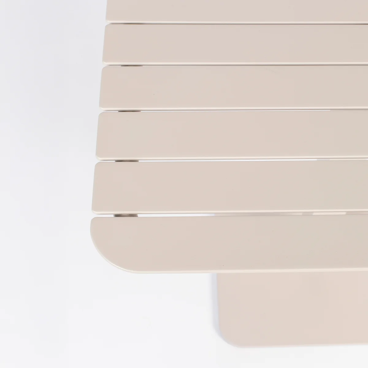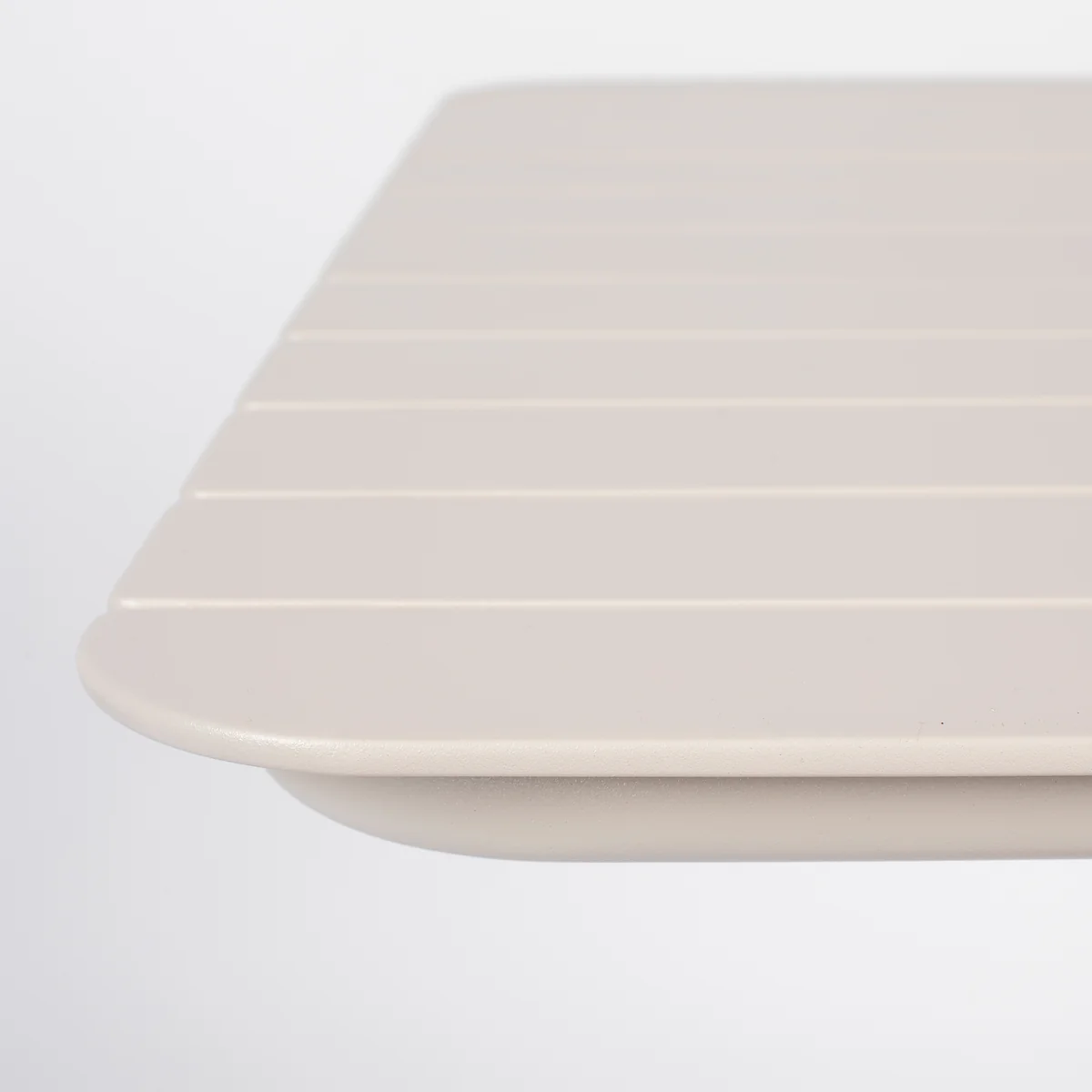 Les lignes claires et le design bien pensé sont le fruit d'une coopération entre le label néerlandais Zuiver et le célèbre studio APE. Chaque détail a été pris en compte : Les pieds de table légèrement inclinés assurent une grande stabilité, tandis que les fines encoches dans le plateau de table permettent à l'eau de pluie de s'écouler sans problème.