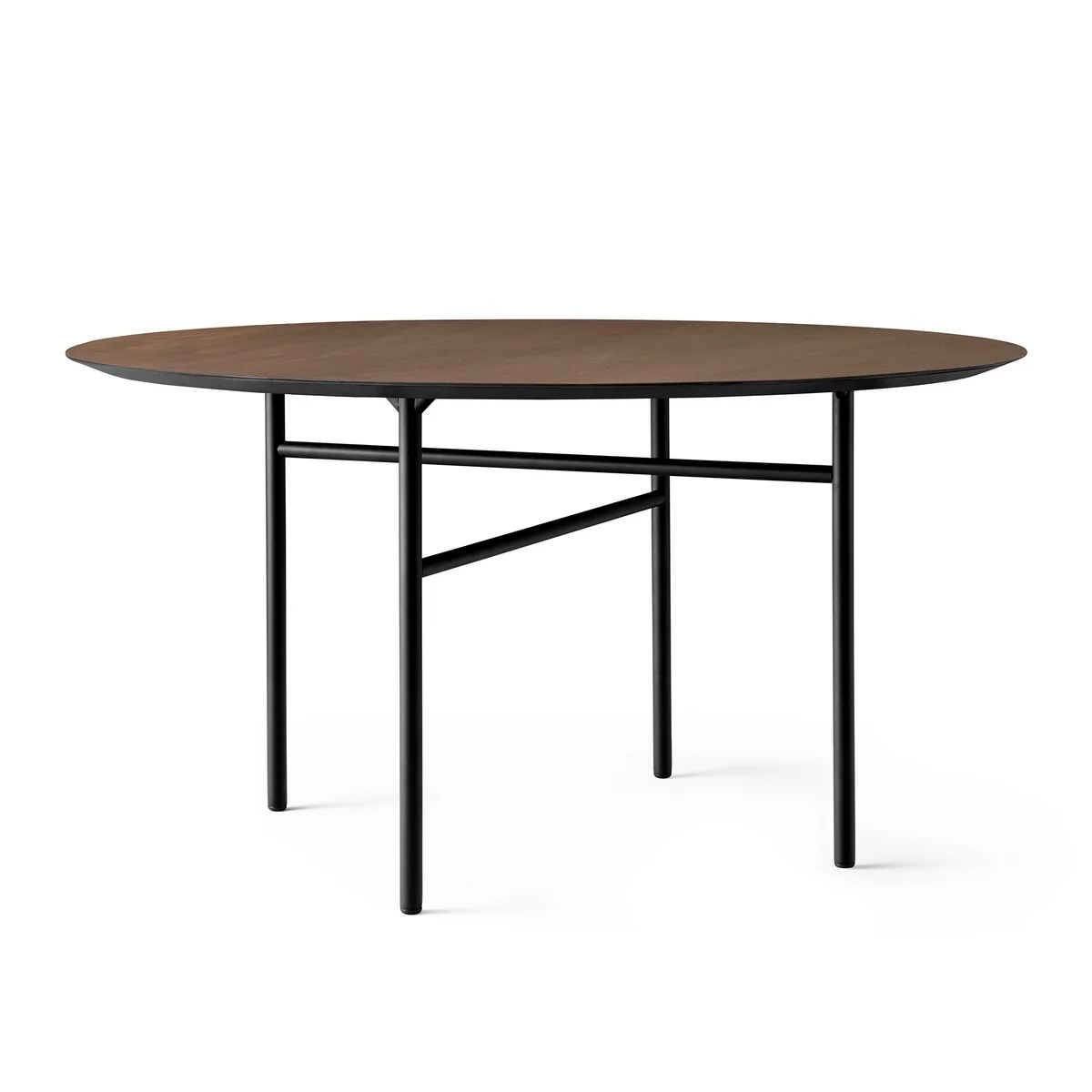 Disponible en différentes tailles et formes, cette table au design discret est dotée d'un placage en chêne teinté et d'un piètement revêtu par poudre.