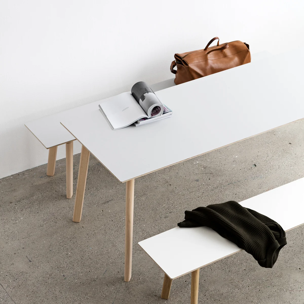 La particularité de la table réside dans la structure de sa surface. Alors que les pieds sont en bois, HAY a eu recours à la toute dernière nanotechnologie pour le plateau de la table. Un type spécial de stratifié produit une surface soft-touch extrêmement mate, qui est d'une part facile à entretenir et d'autre part protège des traces de doigts inesthétiques.