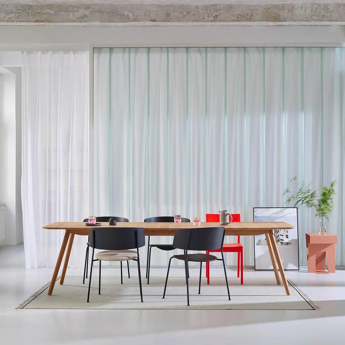 La table Meyer table extensible de OUT Objekte unserer Tage apporte le même design en bois massif intemporel que la Meyer - mais elle élargit sa fonctionnalité : grâce à une pièce de jonction, la table peut passer d'une longueur de 180 cm à une longueur de 225 cm. Grâce à un mécanisme ingénieux, la table extensible conserve son Meyer table extensible conserve son design fin et aéré. Ainsi, plus rien ne s'oppose à la prochaine fête avec plusieurs invités !