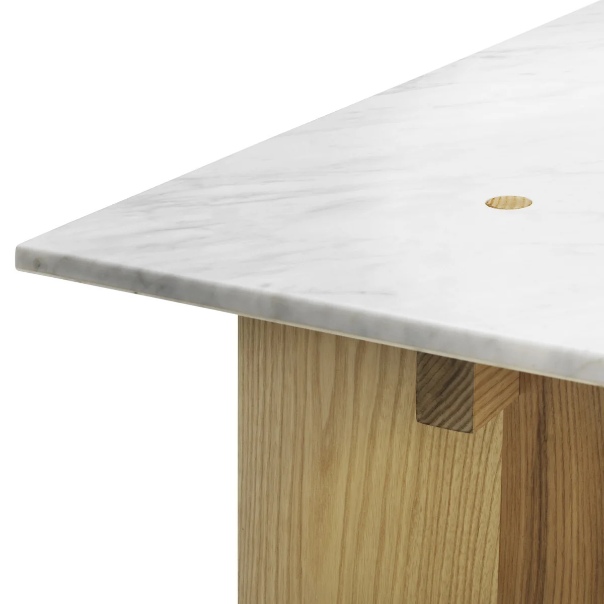 Donc solid e comme son nom : Le Solid La table basse est en bois de frêne massif et en marbre. Lars B. Fjetland a combiné une silhouette simple avec une apparence luxueuse dans le tableau de Normann Copenhagen .