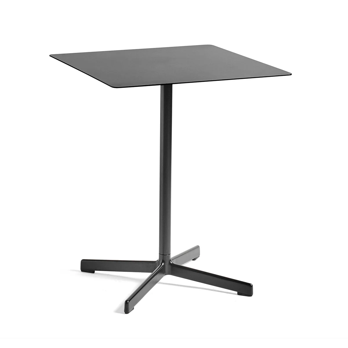 La table est composée d'un plateau carré en acier revêtu par poudre et d'un piètement en aluminium moulé en forme d'étoile. La table s'intègre discrètement dans l'ambiance des cafés ou restaurants mais elle fera également bonne figure sur la terrasse de votre maison ou dans la cuisine.