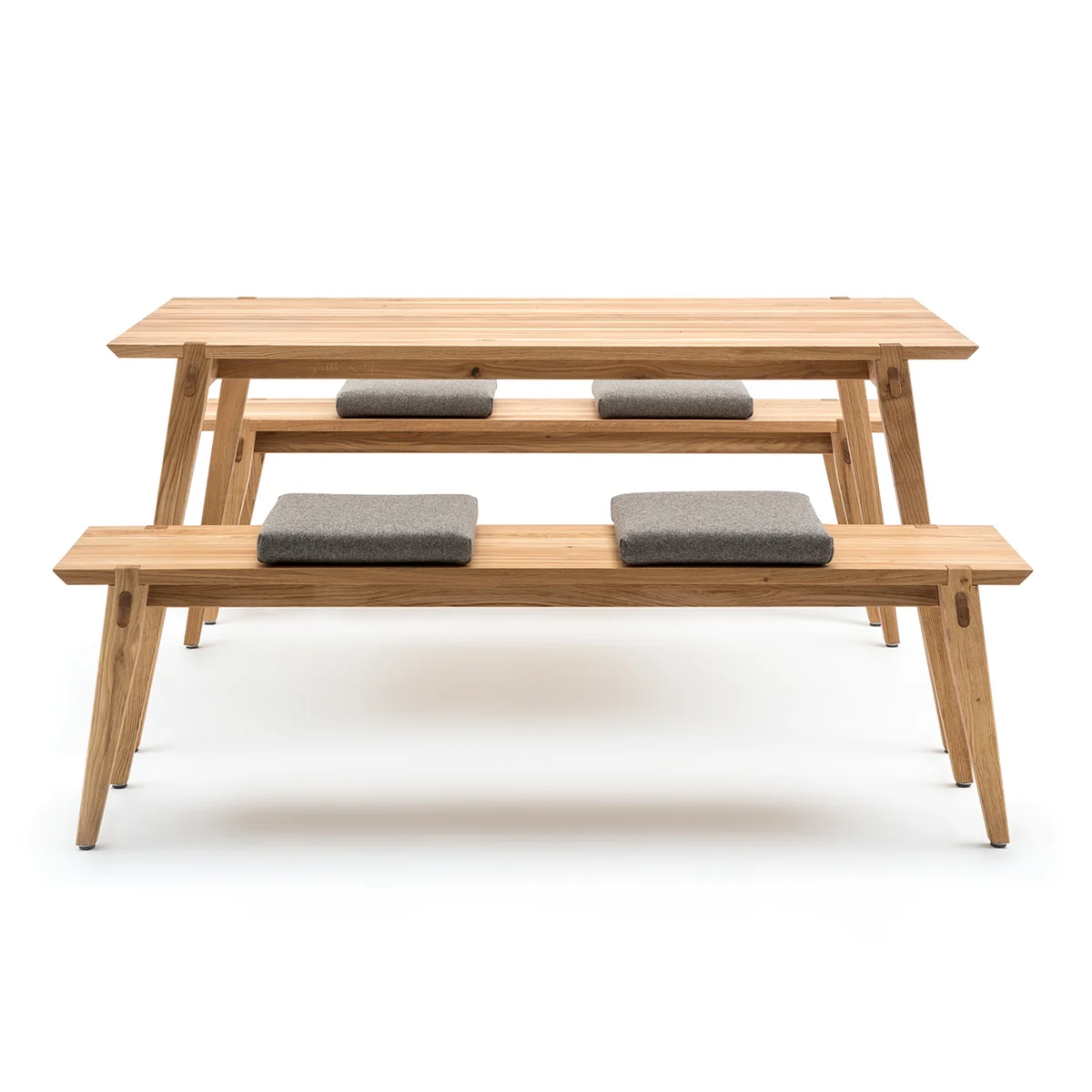 La table 156 de freistil en bois de chêne massif est à la fois moderne et intemporelle. Le bois naturel est huilé et minutieusement travaillé. Avec une longueur de 160 cm, la table offre de la place pour 6 personnes.