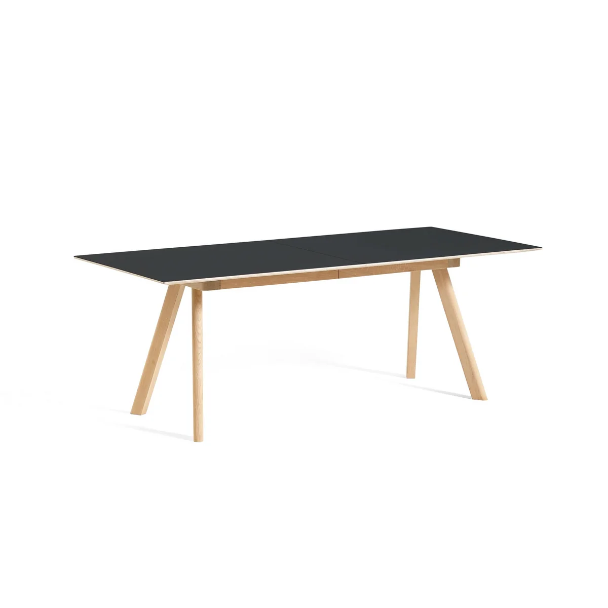 La CPH30 extensible est disponible en plusieurs tailles avec un cadre en chêne dans différentes finitions. Le plateau de table est disponible en différentes options de bois, de stratifié ou de linoléum.
