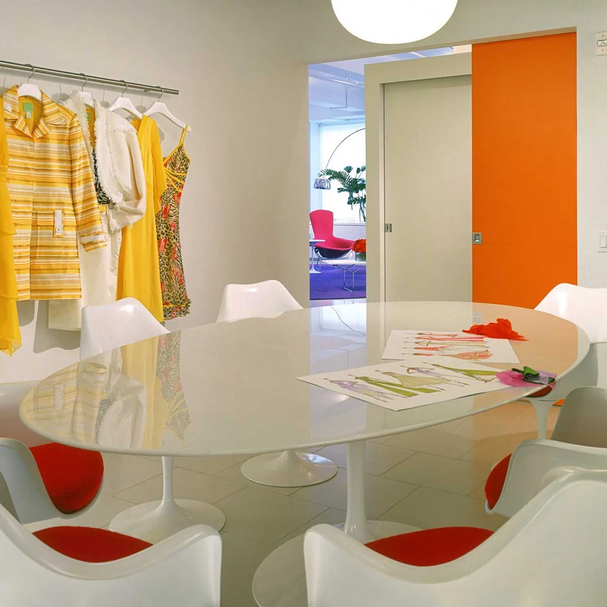 Si, au début, seule la chaise Tulip Chair , mondialement connue, portait le nom de la tulipe, la table qui l'accompagne est aujourd'hui également connue sous le nom de "Tulip Table", car la collection de meubles unijambistes de Knoll est indissociable. Avec sa forme claire, sculpturale et organique, la table de salle à manger Saarinen Tulip , créée en 1956, est un modèle d'intemporalité que l'on retrouve encore aujourd'hui dans d'innombrables musées, hôtels et galeries du monde entier.