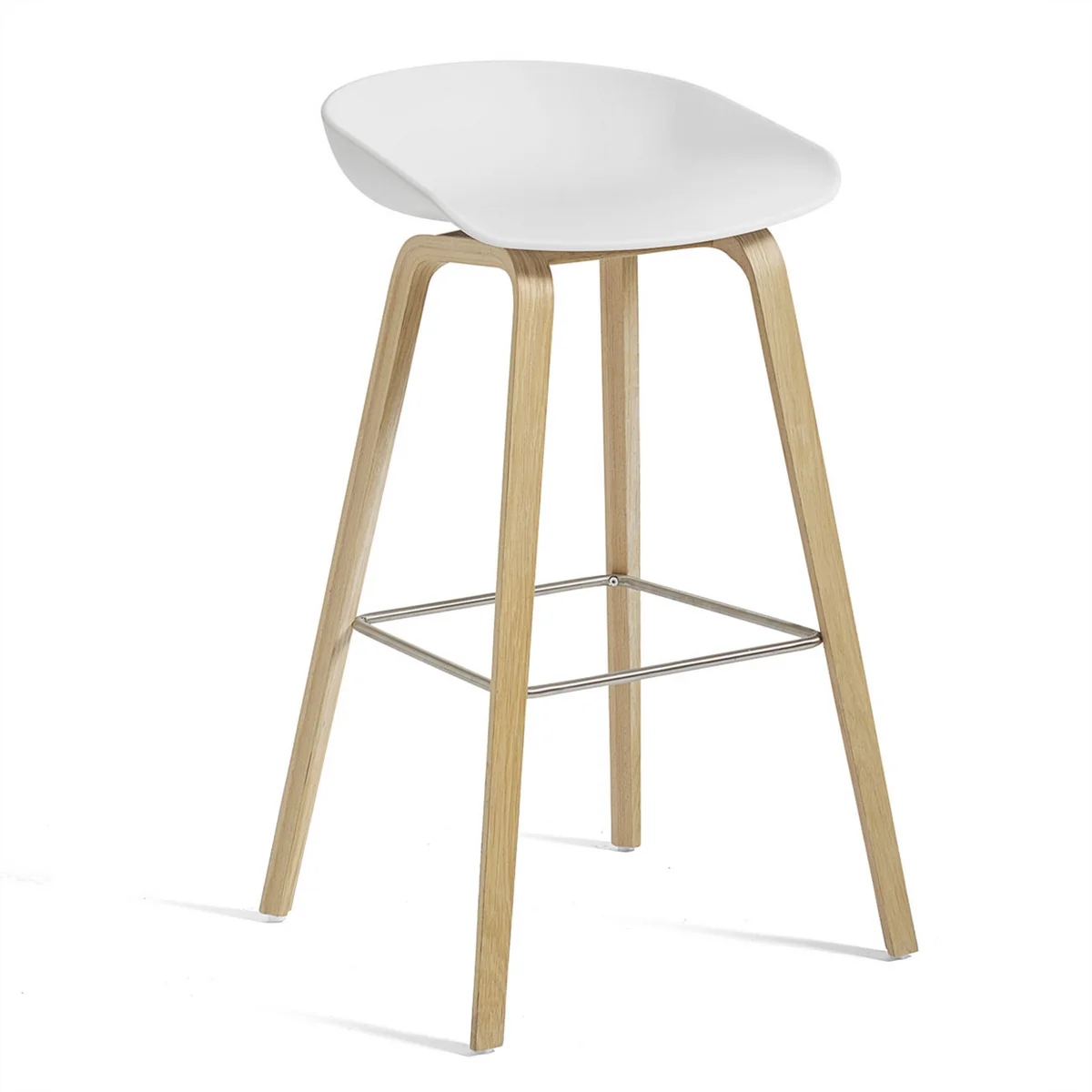 Les tabourets de HAY ont un design d'une simplicité frappante. Avec eux, le designer Hee Welling a atteint un nouveau niveau dans la combinaison de la forme, de la fonction, du confort, du détail et de l'esthétique. Le AAS 32 ajoute à la série un tabouret de bar à structure en bois qui s'accorde parfaitement avec la philosophie du reste du mobilier.