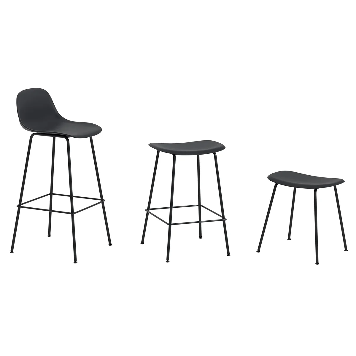 Muuto - Tabouret de bar Fibre avec dossier, structure en métal H 65 cm, noir / noir