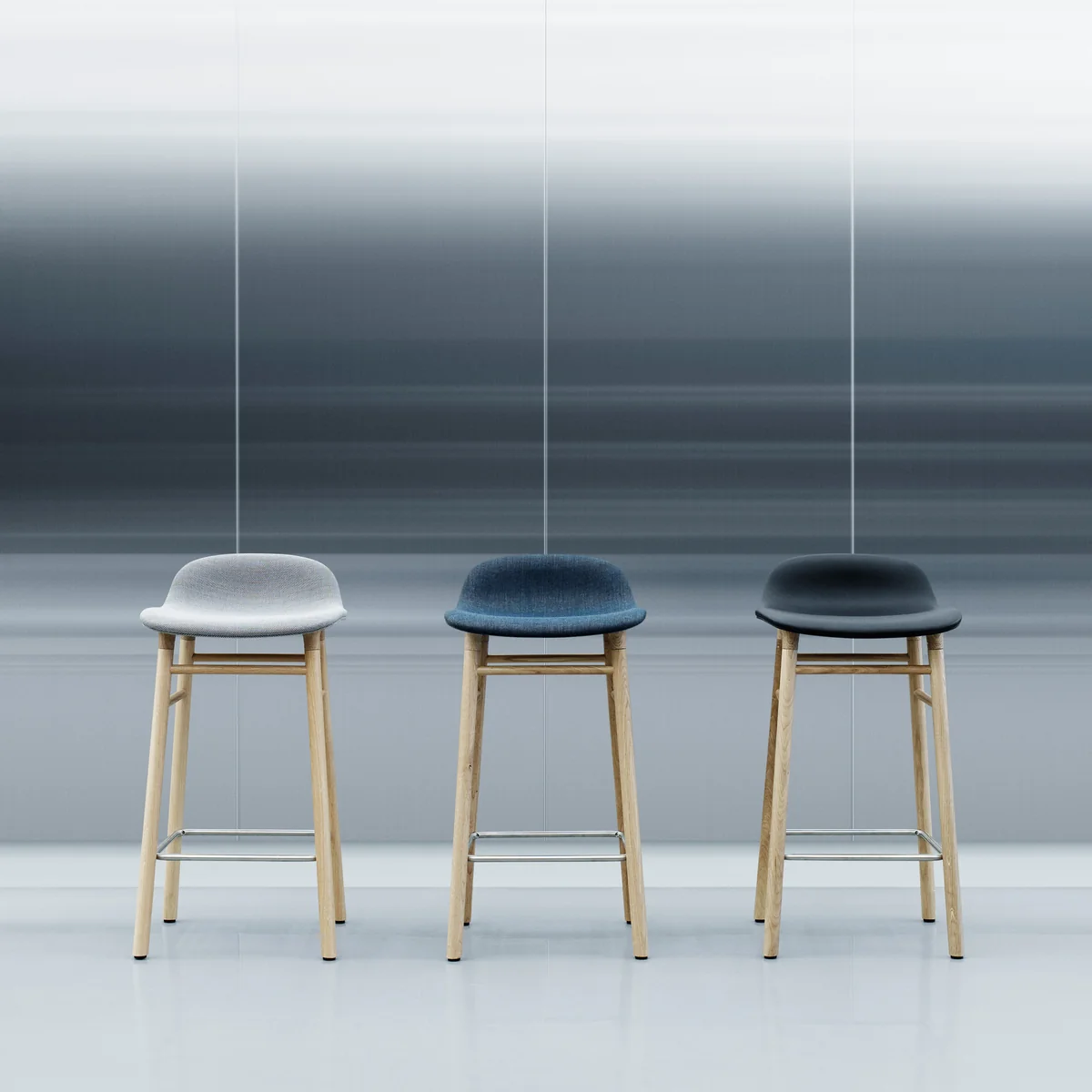 Sur demande, le tabouret Form de Normann Copenhagen est disponible dans d’autres couleurs, avec une hauteur d'assise de 75 cm ou avec un piétement en acier, noyer ou chêne.