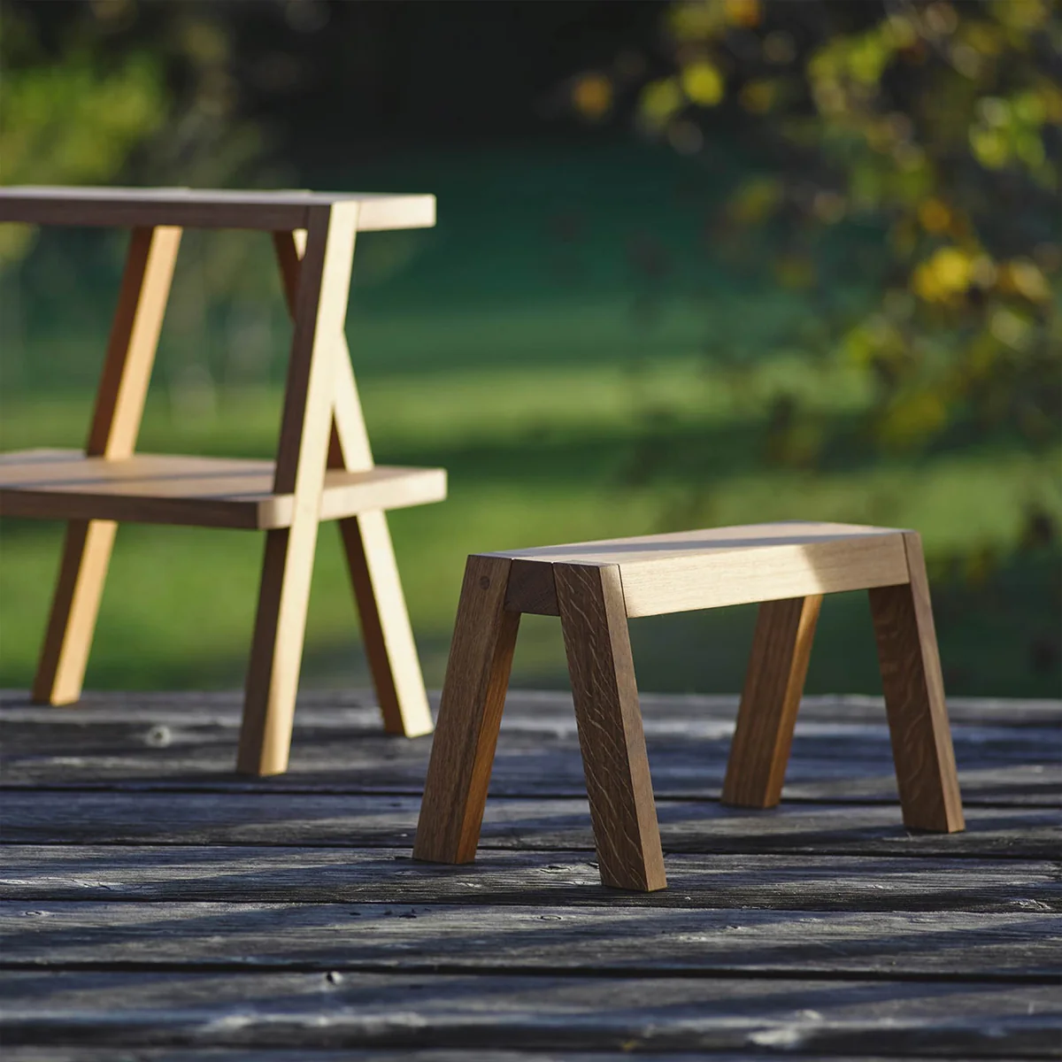 Gerry Kellermann a dessiné le « Petit frère » qui est non seulement parfaitement assorti à son grand modèle, mais fait également bonne figure en association avec d'autres meubles. Fabriqué en bois de chêne huilé, le tabouret d'Auerberg peut être utilisé comme table de chevet, table d'appoint, escabeau classique ou table d'appoint supplémentaire.