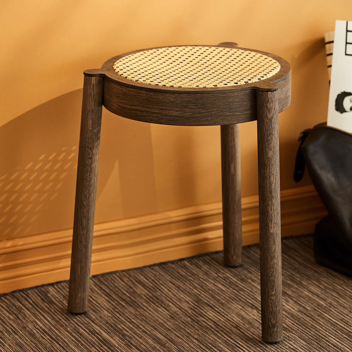 Le tabouret est en placage de chêne, qui a un grain distinct et est disponible en version naturelle et fumée.