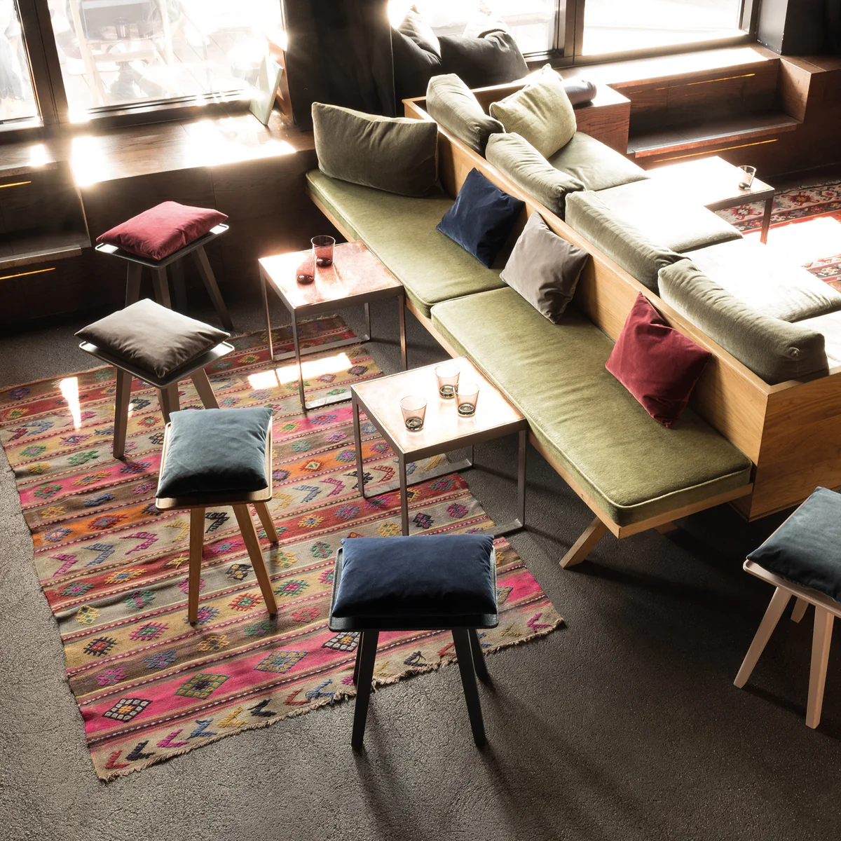 Le tabouret Nini de Schönbuch a de multiples usages. Il offre une assise confortable avec coussin tandis que sans coussin, il devient une table d’appoint parfaite. Le design esthétique s’intègre dans tous les intérieurs et transforme le tabouret en un objet design qui vaut la peine d'être vu. Grâce au bois huilé, l’aspect noble et la stabilité sont longtemps préservés.