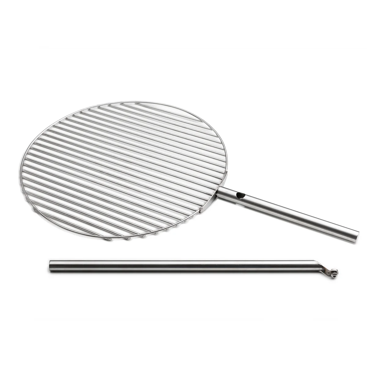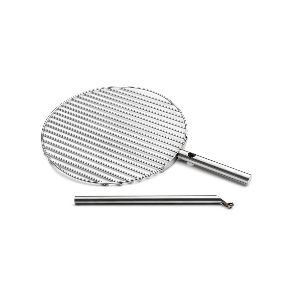 La grille Triple est l'un des accessoires assortis pour le brasero Triple de höfats. Grâce à la grille en acier inoxydable, le foyer rustique peut être transformé en barbecue en un tour de main. Pour cela, il est placé sur la tige Triple, sur laquelle la grille peut être ajustée en hauteur en continu et qui pivote simplement. Cela rend la grille flexible dans son utilisation. Selon les besoins, les aliments du barbecue peuvent être sautés, légèrement frits ou simplement gardés au chaud.