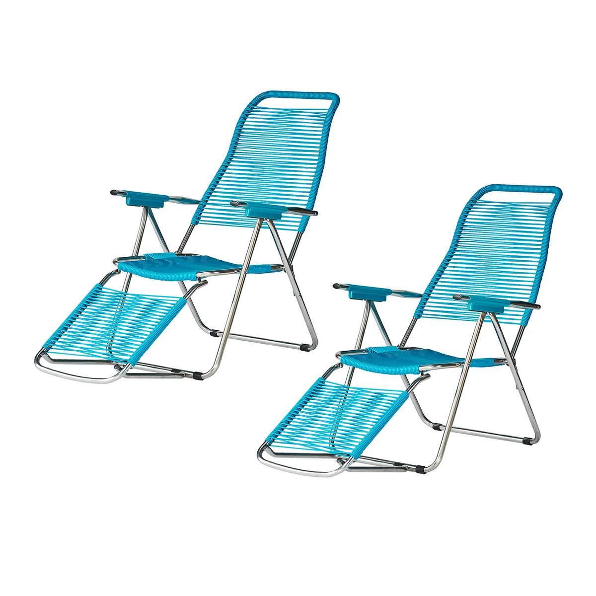La chaise longue Spaghetti de Fiam convainc par sa structure en aluminium et son laçage en bande PVC en Spaghetti forme. Le design date des années 1980 et est non seulement intemporel et moderne, mais aussi extrêmement confortable.