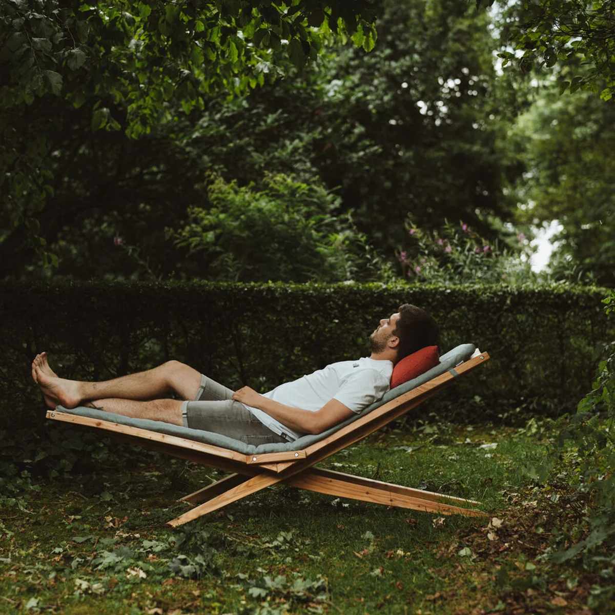 Avec le Woodlounger de Weltevree , on peut profiter d'une pure détente. Woodlounger est un meuble qui offre le confort d'un hamac, mais qui peut être placé partout de manière flexible. Le fabricant de meubles et designer Georg Wasensteiner a transformé la base archétypale de ce classique belge très apprécié en une charmante chaise longue. Pour une détente ultime, le Woodlounger est équipé d'un matelas en peluche et d'un ensemble de coussins - réglables en hauteur pour s'adapter à tous, petits et grands.