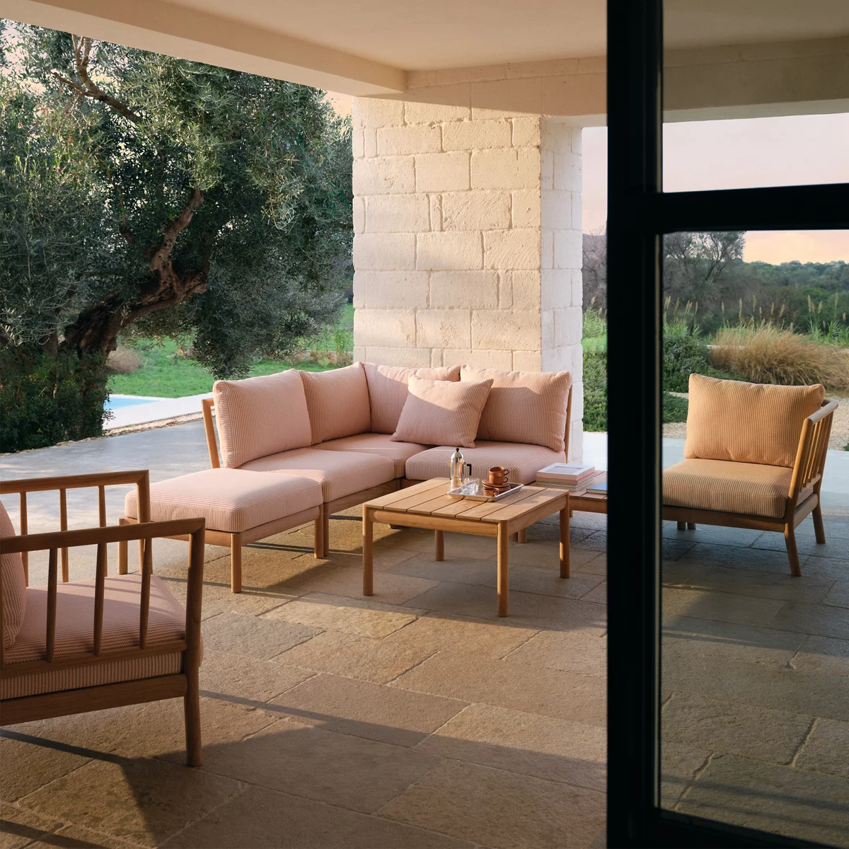 Le cadre en bois de teck, fabriqué avec précision, est façonné à l'aide de techniques spéciales afin de préserver le veinage naturel tout en garantissant la stabilité et la durabilité. De fins détails artisanaux tels que les assemblages par aboutage, les joints Dado cachés et la dissimulation délibérée des veines du bois de bout soulignent l'exigence de qualité élevée. Le résultat est un pouf d'extérieur intemporel qui respire le calme, la constance et la tradition du design danois.
