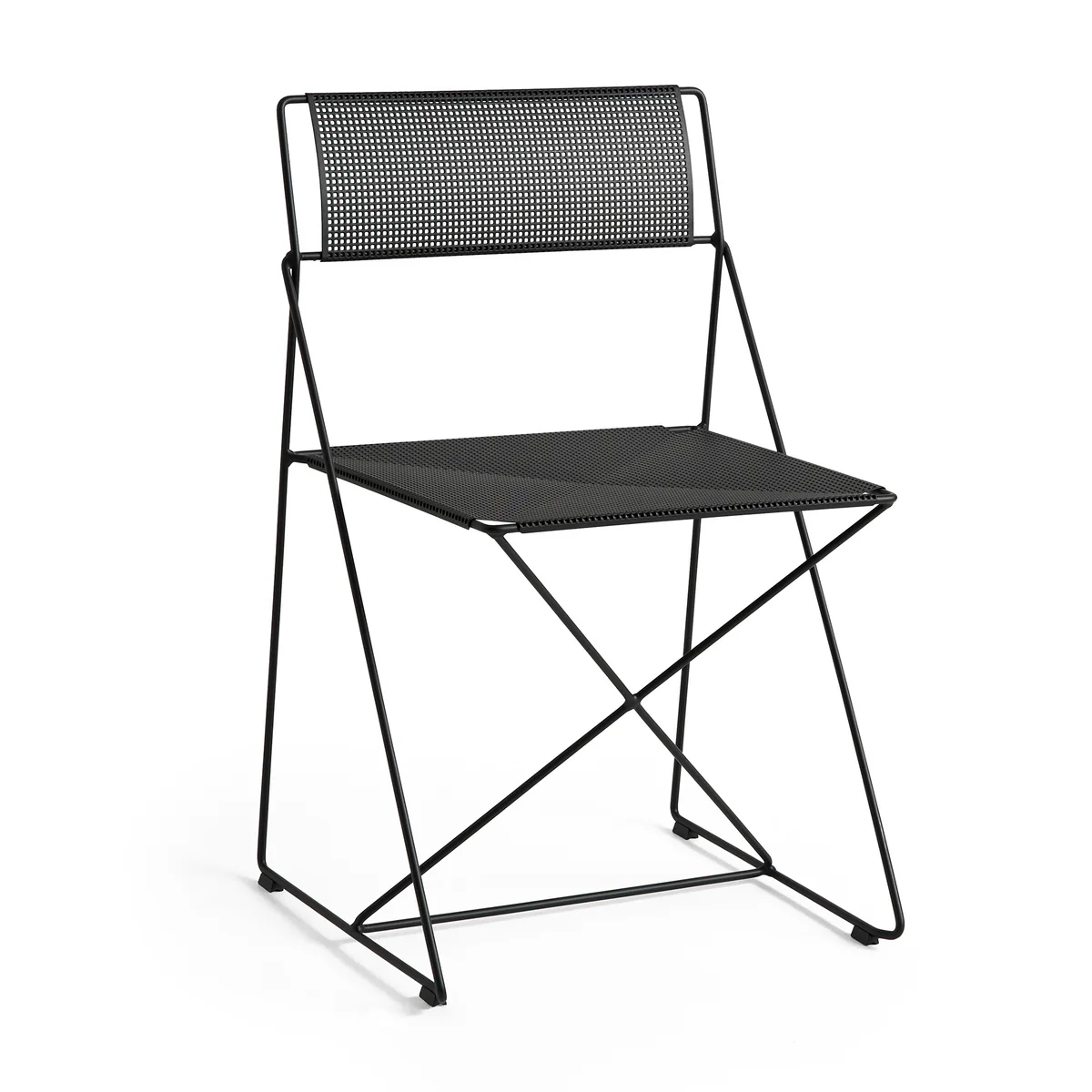 La chaise X-Line Outdoor Chair de HAY , conçue par Niels Jørgen Haugesen à la fin des années 1970, est un classique intemporel au design moderne. Fabriquée en fil métallique fin, la chaise allie le charme industriel à une construction en acier précise et constitue un exemple remarquable du mouvement high-tech des années 70.