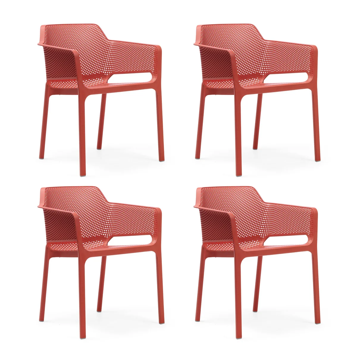 La chaise à accoudoirs Net conçue par Raffaello Galiotto est disponible en différentes couleurs à effet mat, qui se combinent parfaitement entre elles ainsi qu'avec d'autres meubles de jardin de Nardi . Les coussins assortis sont disponibles séparément.