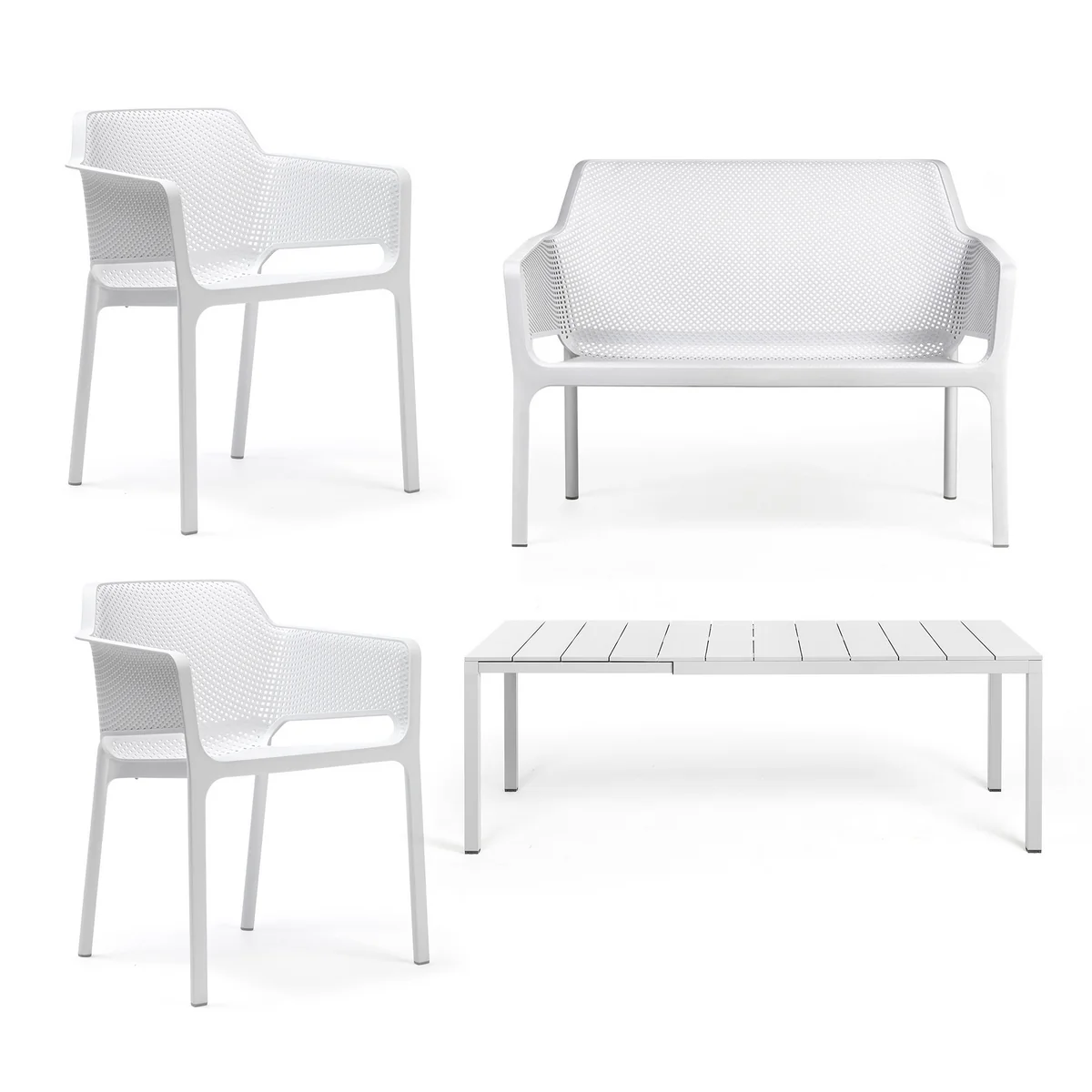 La chaise à accoudoirs Net conçue par Raffaello Galiotto est disponible en différentes couleurs à effet mat, qui se combinent parfaitement entre elles ainsi qu'avec d'autres meubles de jardin de Nardi . Les coussins assortis sont disponibles séparément.