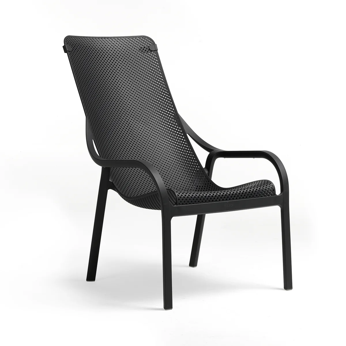 Net Lounge procure une sensation de bien-être rien qu'en le regardant. Un fauteuil d'extérieur recyclable en polypropylène renforcé de fibres de verre avec une assise généreuse et profonde, une forme enveloppante et un profil incurvé qui rappelle une vague.
