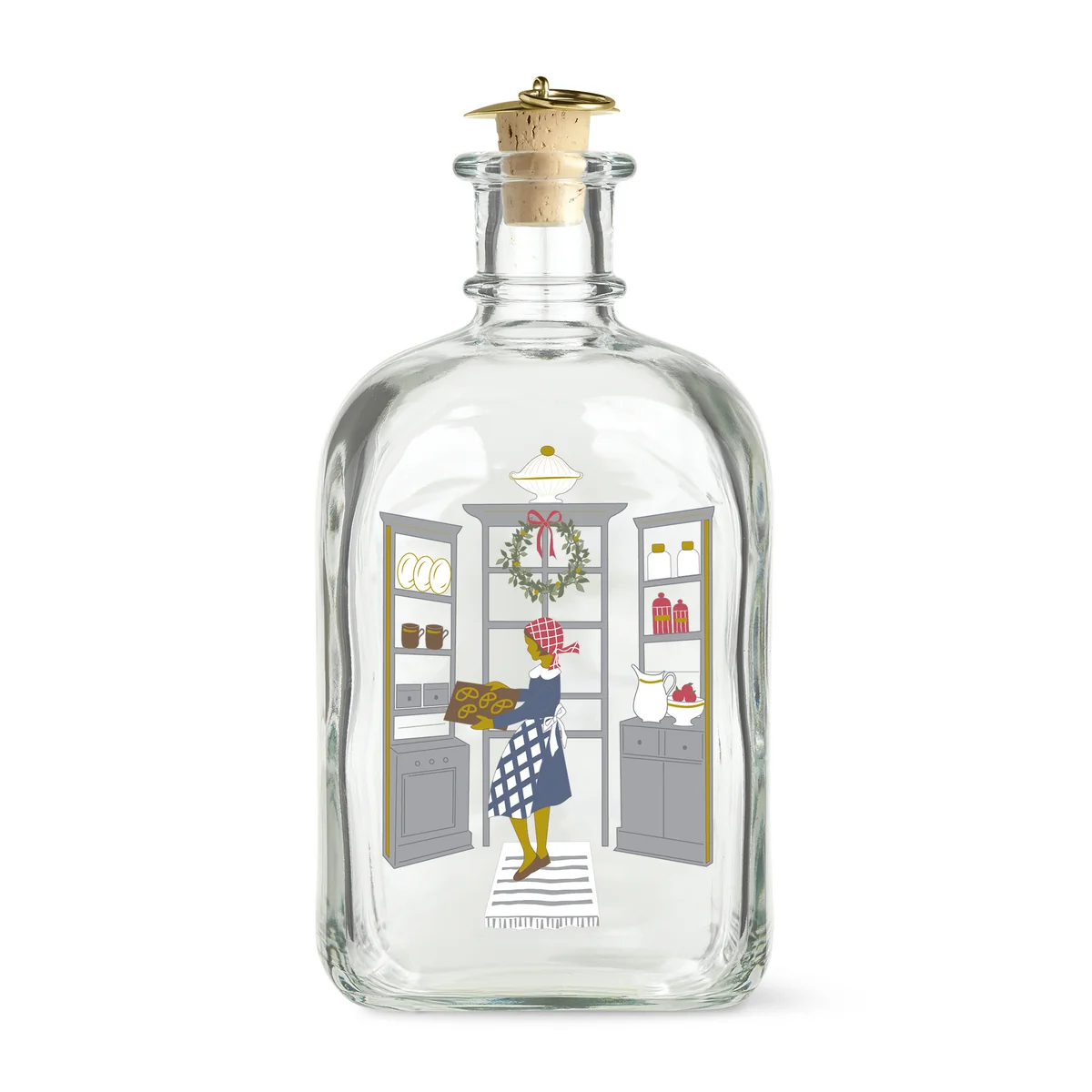 La bouteille de Noël est fabriquée en verre soufflé et se ferme confortablement avec un bouchon en liège.