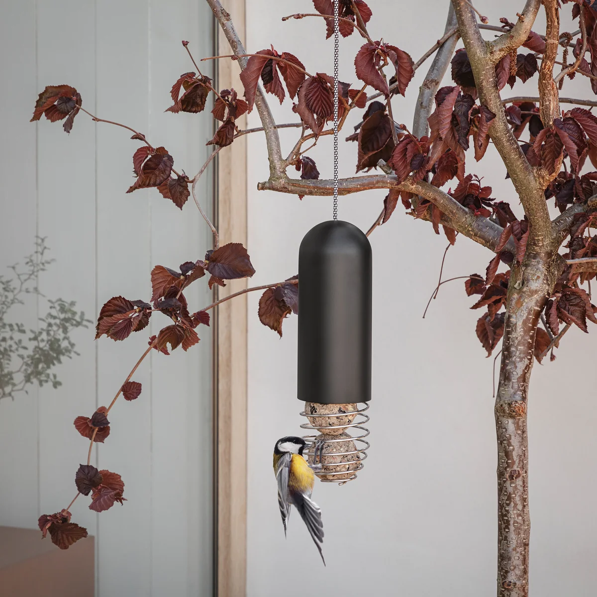 Le porte-boules pour mésanges du label Eva Solo permet un accès facile et optimal à toutes sortes d'amis à plumes ! La mangeoire pour oiseaux suspendue peut contenir jusqu'à trois boulettes de mésanges. Le porte-mangeoire empêche les grands oiseaux d'arracher les friandises aux petits. Pour ajouter de la nourriture, il suffit de soulever le couvercle noir. Le support pour boulettes de mésanges peut être facilement fixé à un arbre ou à la gouttière d'une fenêtre à l'aide d'une ficelle. Il est fabriqué dans un mélange de polyester et d'acier inoxydable revêtu par poudre.