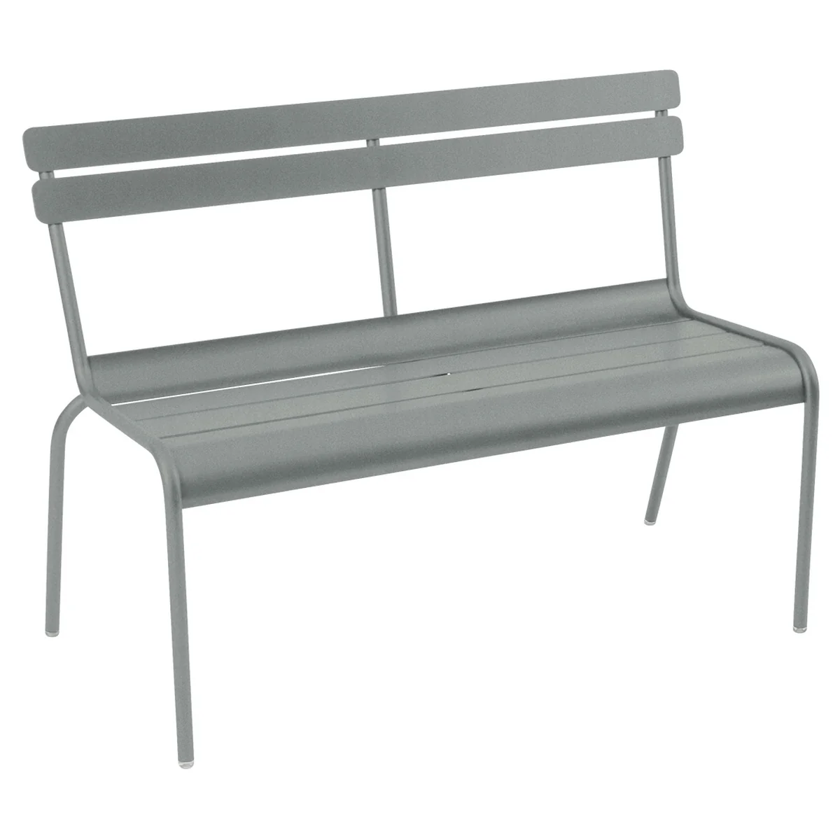 Le Luxembourg banc est également disponible dans une version sans dossier. D'autres éléments de la Luxembourg collection comme les chaises, une table carrée et une table rectangulaire, un fauteuil profond double, une tablette à roulettes et un repose-tête sont disponibles. Tous les produits sont disponibles dans toutes les couleurs de Fermob .