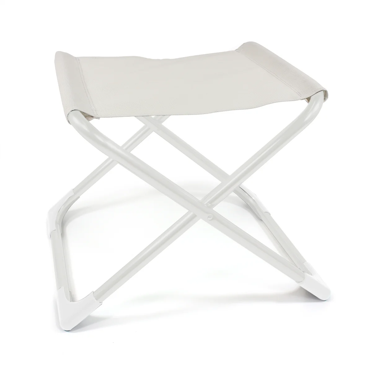 Le tabouret pliant Chico de Fiam est idéal pour s’asseoir rapidement et comme table d’appoint sur le terrain de camping, dans le jardin ou à la plage.