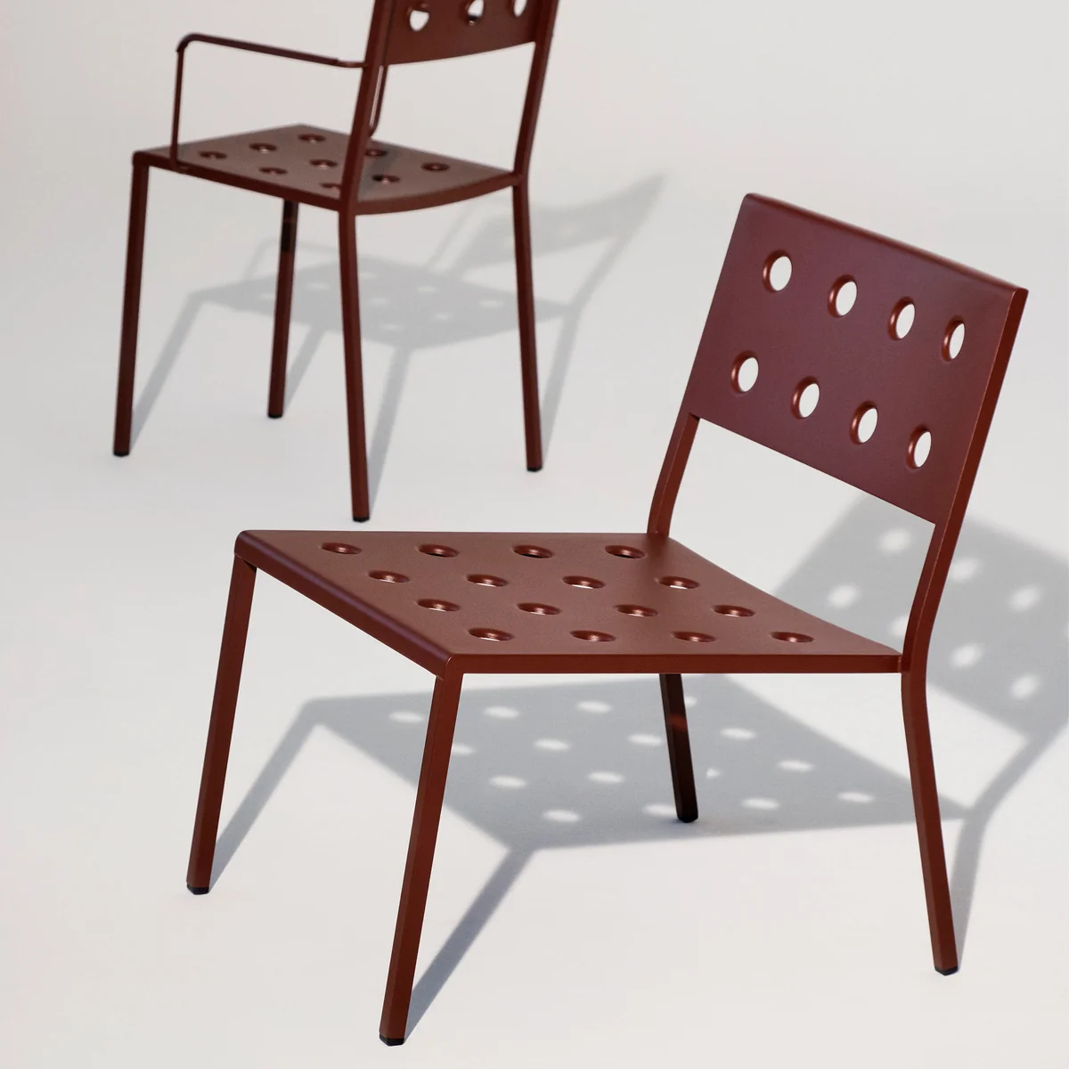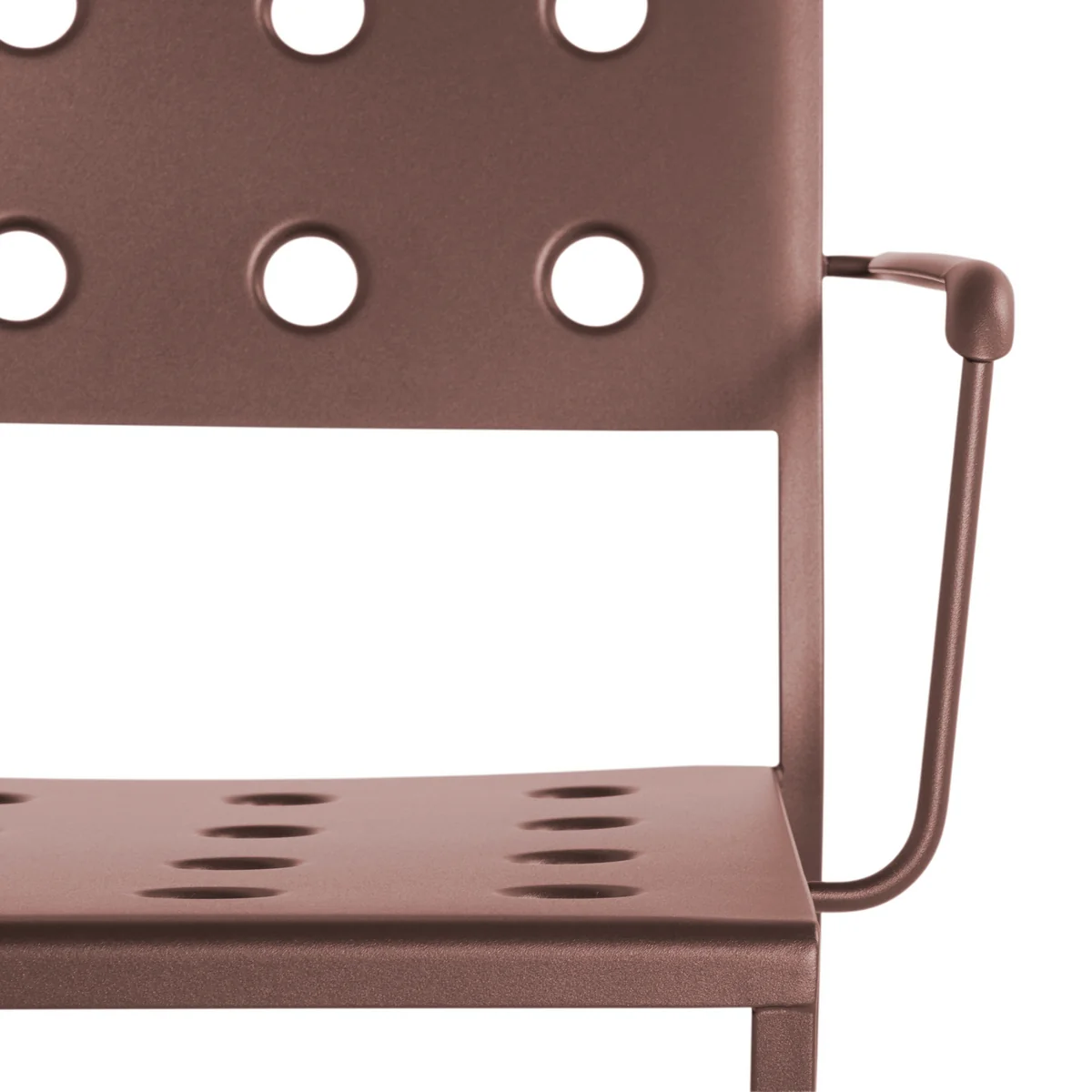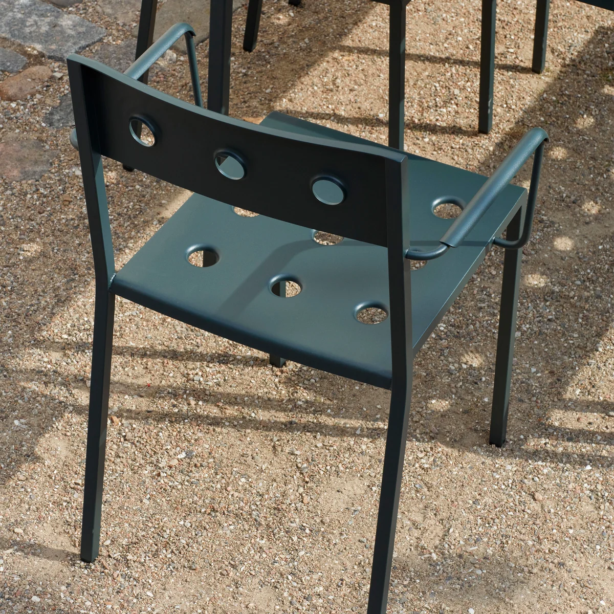 Le Balcony chaise avec accoudoirs de Ronan et Erwan Bouroullec pour HAY est une chaise de salle à manger élégante et fonctionnelle avec accoudoirs. Le design large et carré a un aspect plus doux grâce au dossier et aux accoudoirs arrondis. Les trous dans l'assise et le dossier confèrent de la stabilité à la construction et assurent en outre une expression particulière. Le fauteuil Balcony La chaise avec accoudoirs est fabriquée en acier laqué époxy avec un revêtement qui garantit sa résistance et sa durabilité, ce qui la rend idéale pour l'extérieur.