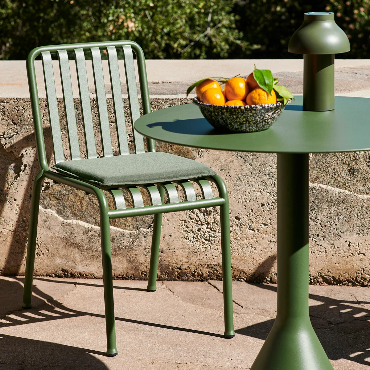 La chaise Palissade chaise de HAY a été conçue par les frères designers Ronan et Erwan Bouroullec et est un meuble fonctionnel et esthétique pour l'extérieur. Grâce à l'assise disposée en lattes, l'eau de pluie s'écoule sans problème par l'évidement entre les entretoises, de sorte que la chaise peut rester dehors sans problème même par mauvais temps.