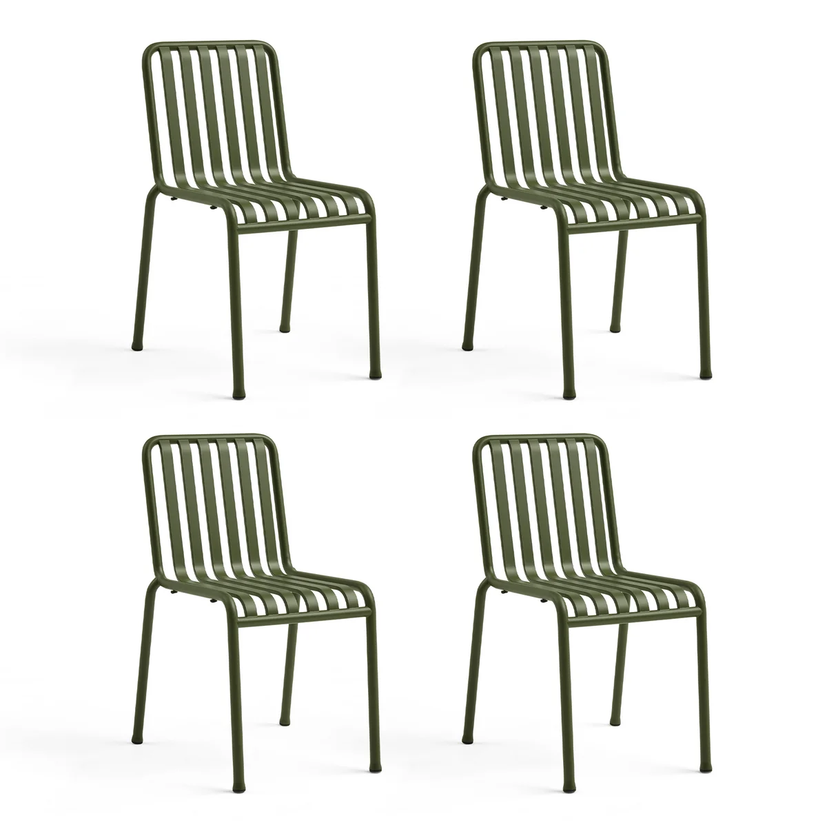 La chaise Palissade chaise de HAY a été conçue par les frères designers Ronan et Erwan Bouroullec et est un meuble fonctionnel et esthétique pour l'extérieur. Grâce à l'assise disposée en lattes, l'eau de pluie s'écoule sans problème par l'évidement entre les entretoises, de sorte que la chaise peut rester dehors sans problème même par mauvais temps.