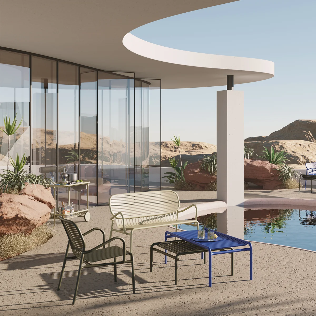 Le fauteuil Week-End de Petite Friture est un meuble d'extérieur élégant qui offre un excellent confort grâce à son large dossier et à ses accoudoirs généreux. Faisant partie de la série du même nom -conçue par le studio BrichetZiegler-, le fauteuil se combine parfaitement avec d'autres chaises, tables et bancs du même style.