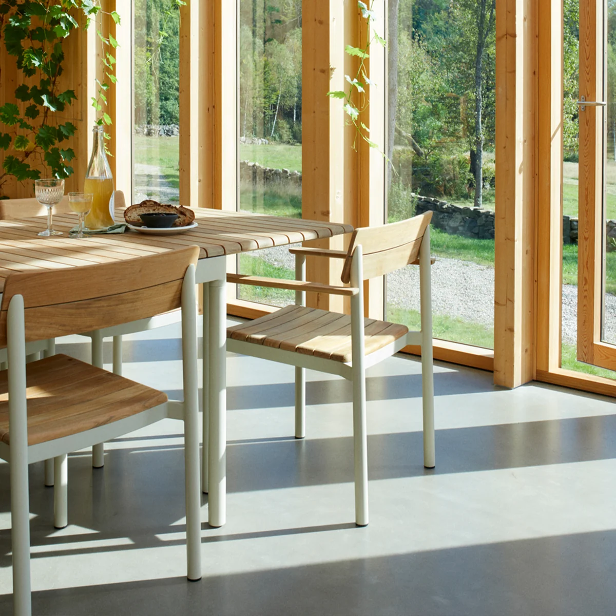 La chaise Pelagus chaise de Note Design Studio pour le fabricant danois Skagerak convainc par son expression contemporaine et gracieuse. Cette chaise robuste offre un grand confort pour les longs dîners à table. Son dossier et son assise en teck et son piètement en aluminium laqué époxy peuvent être utilisés de manière polyvalente. Elle est suffisamment légère pour être déplacée sans problème. En outre, les Pelagus Les chaises peuvent être empilées les unes sur les autres grâce à leur construction élancée.