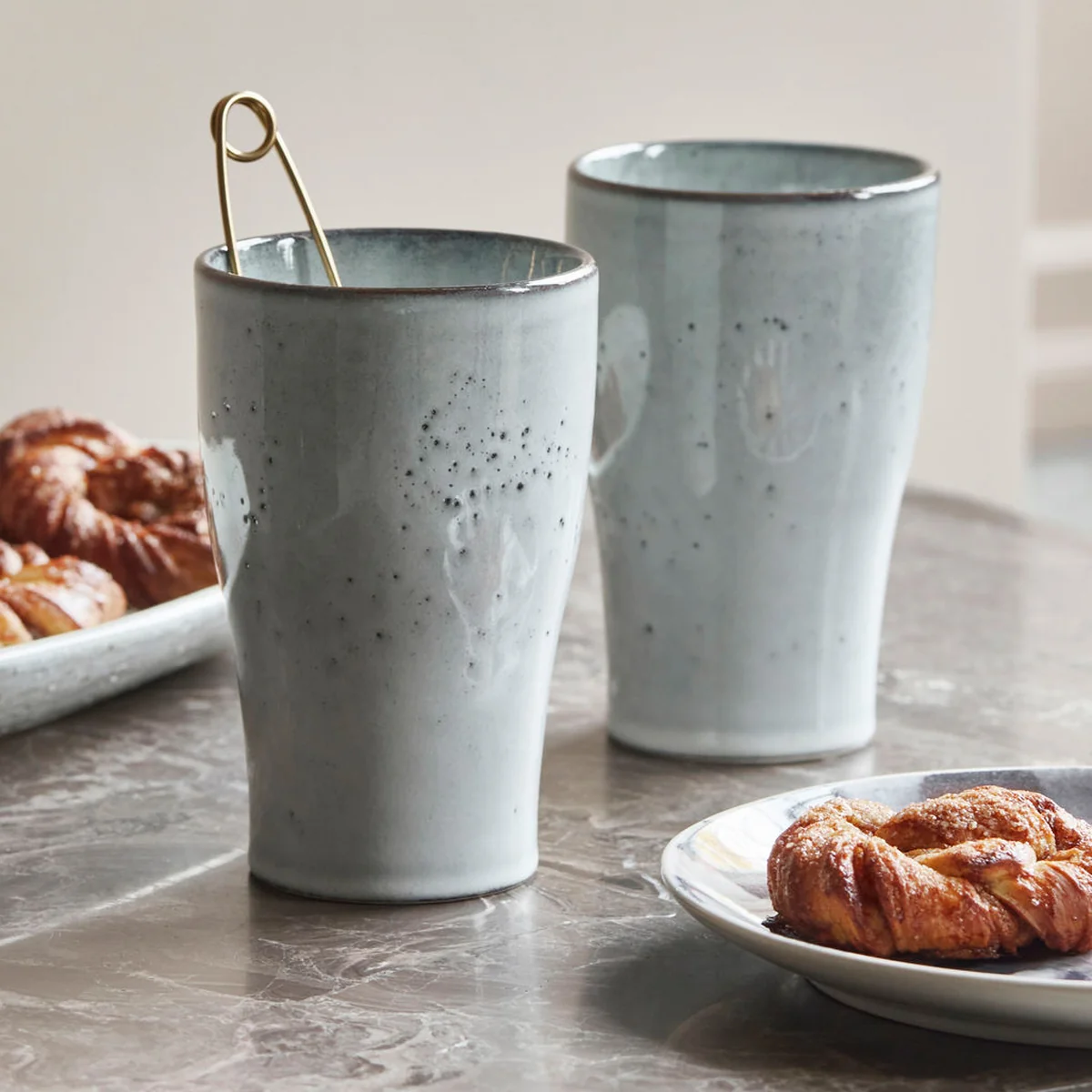 Le Liss set de Doctor House se compose de deux mugs isothermes à double paroi. Le Liss gobelet isotherme est un choix décontracté mais stylé lorsque l'on veut prendre le temps de boire un thé ou un café. Les grands mugs en faïence sont recouverts d'un émail gris foncé avec un motif à pois de la même couleur, qui brille légèrement lorsque les rayons de lumière dansent sur la surface.