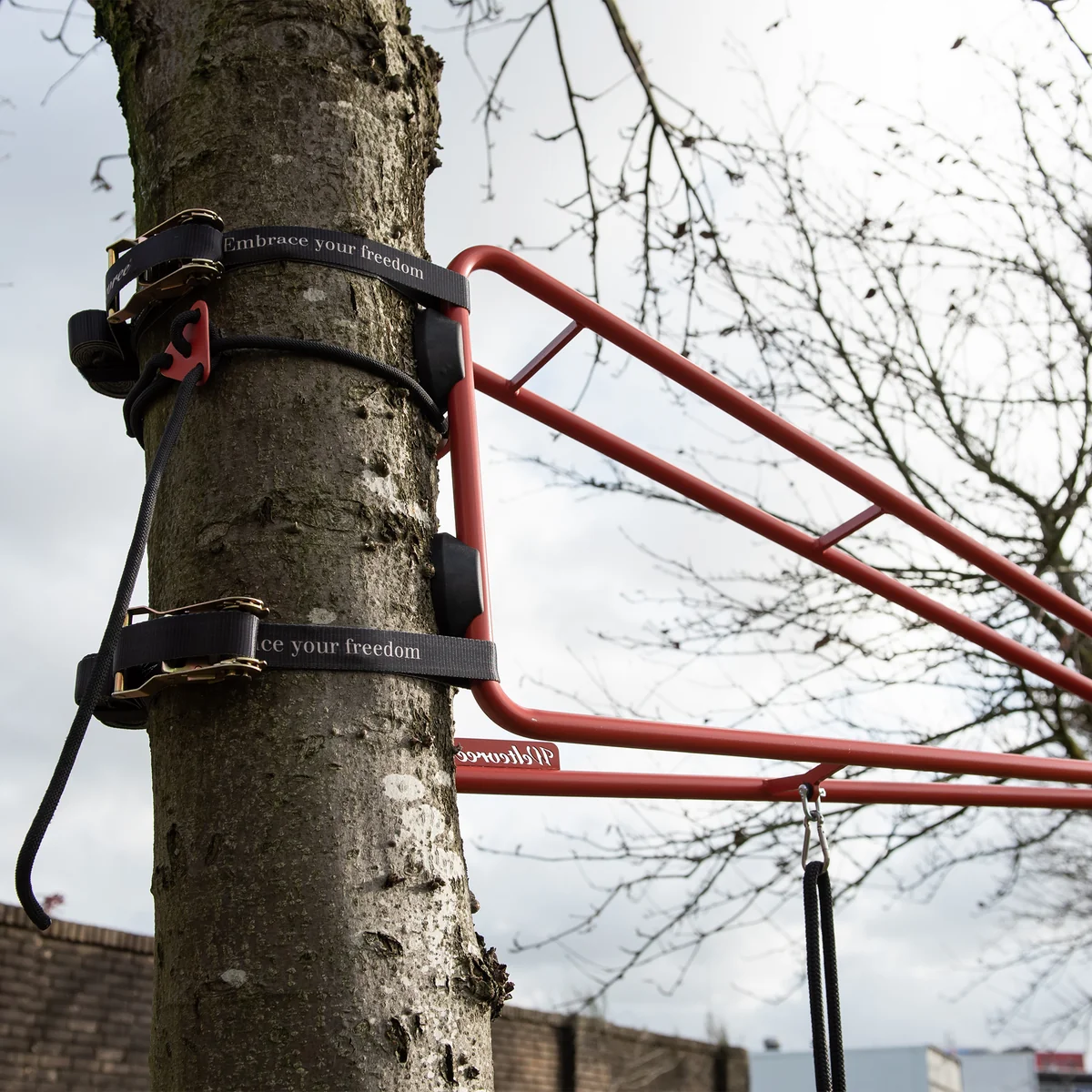 Avec le Swing swing de Weltevree peut être utilisé pour créer un terrain de jeu pour les jeunes et les moins jeunes dans n'importe quel endroit extérieur. Il suffit d'attacher le dispositif en acier à un arbre ou à un poteau à l'aide des sangles de tension et le plaisir de se balancer commence !