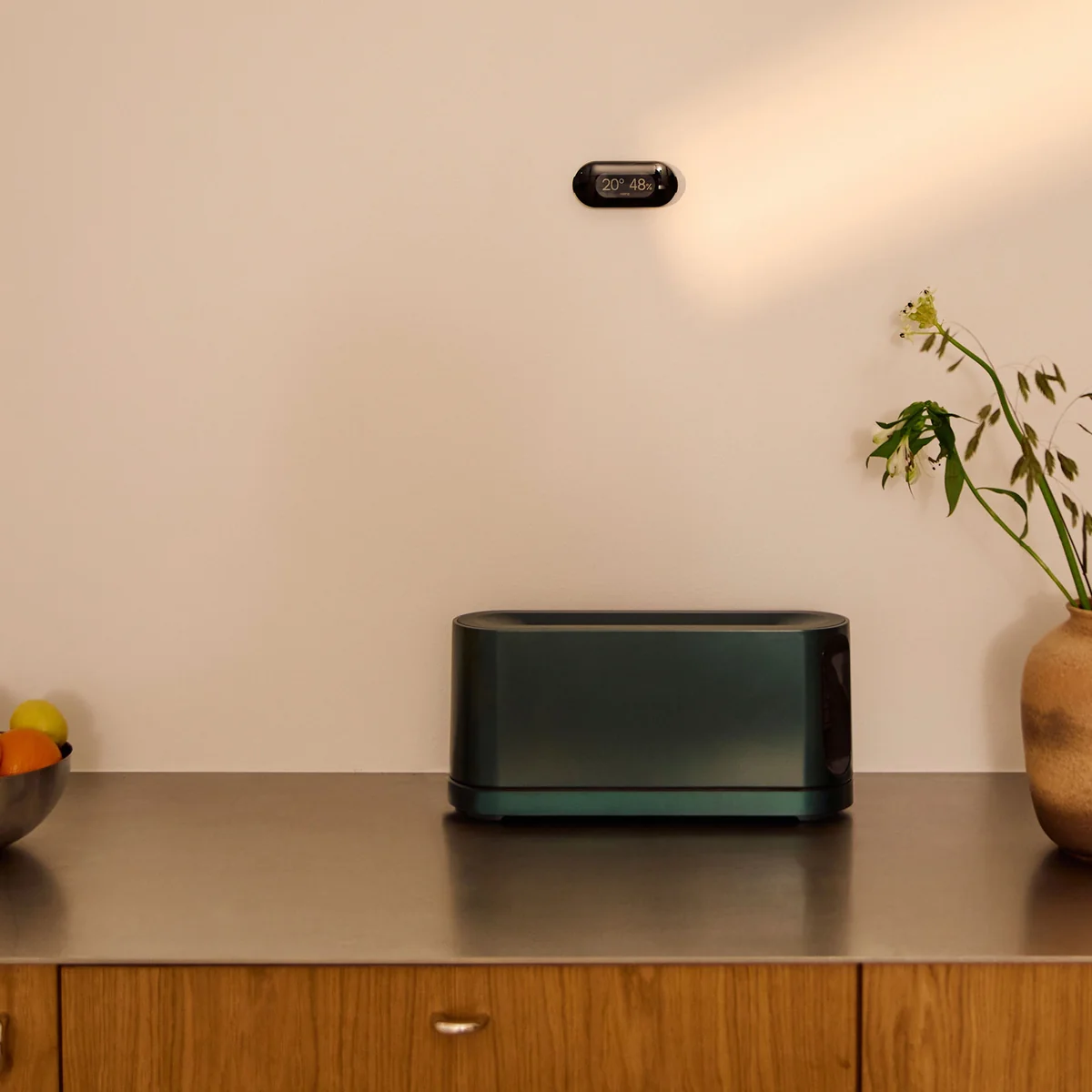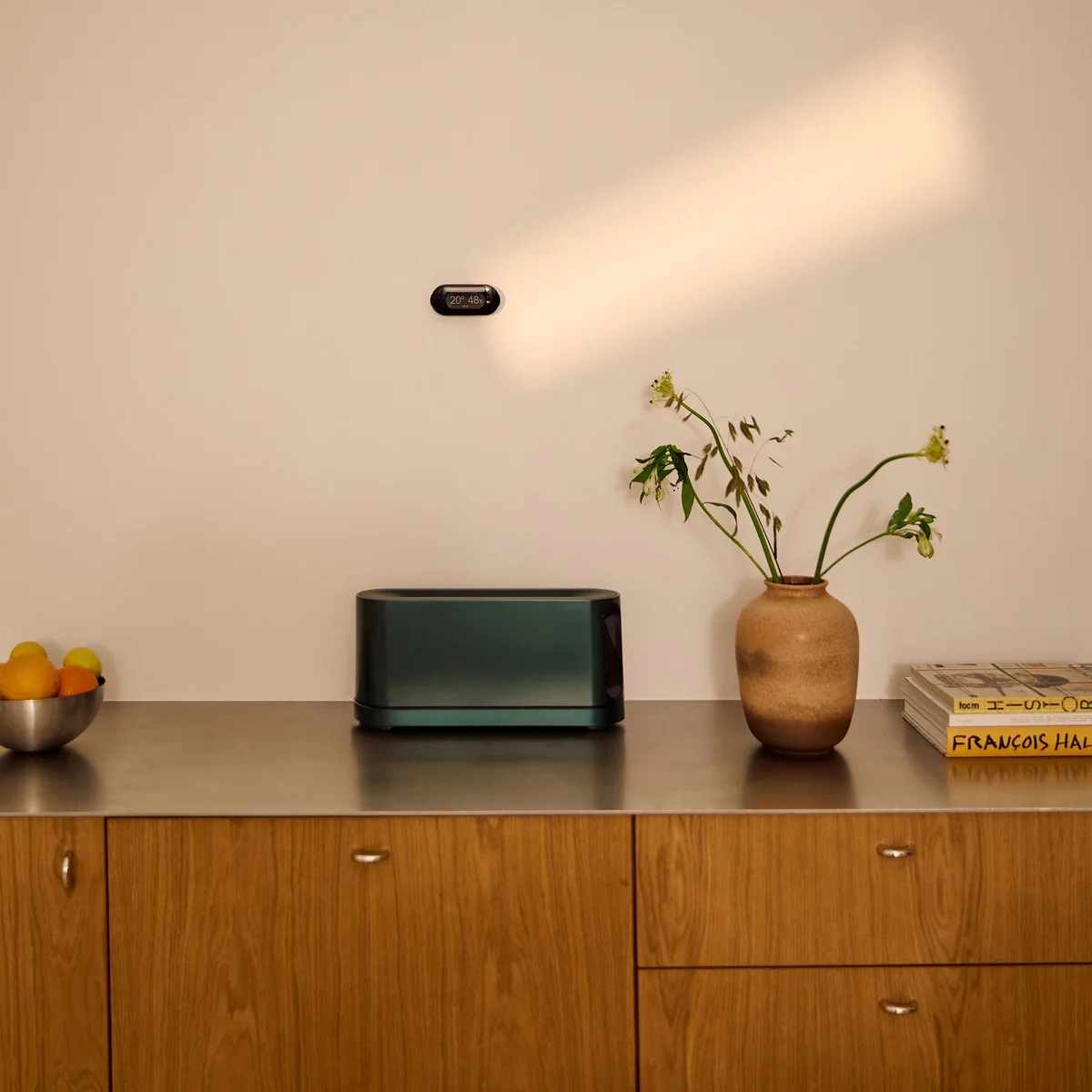 L'unité de capteur externe de Jacob Jensen étend la fonctionnalité de la station climatique à des points de mesure supplémentaires à l'intérieur ou à l'extérieur. Grâce à son support mural magnétique, elle se fixe facilement et s'enlève facilement en cas de besoin. Si elle est installée librement, son design auto-équilibré lui assure une bonne stabilité - sans glisser ni rouler.