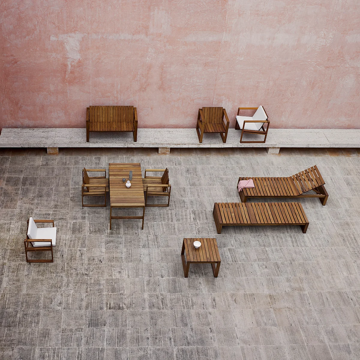 La table d'appoint BK16 a été conçue en 1959 par l'architecte danois Bodil Kjaer. La table, inspirée du cubisme, fait partie de la série de meubles d'intérieur-extérieur de Carl Hansen pour l'intérieur et l'extérieur. La table en teck massif convainc par sa forme géométrique claire et sa grande fonctionnalité. Avec le temps, le bois prend une belle patine.