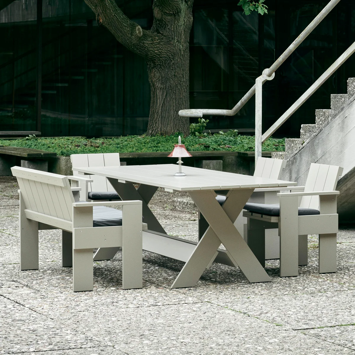 Le Crate Dining Table est fabriquée en pin massif et recouverte d'un vernis à base d'eau dans différentes options de couleur et convient à une grande variété d'environnements extérieurs.