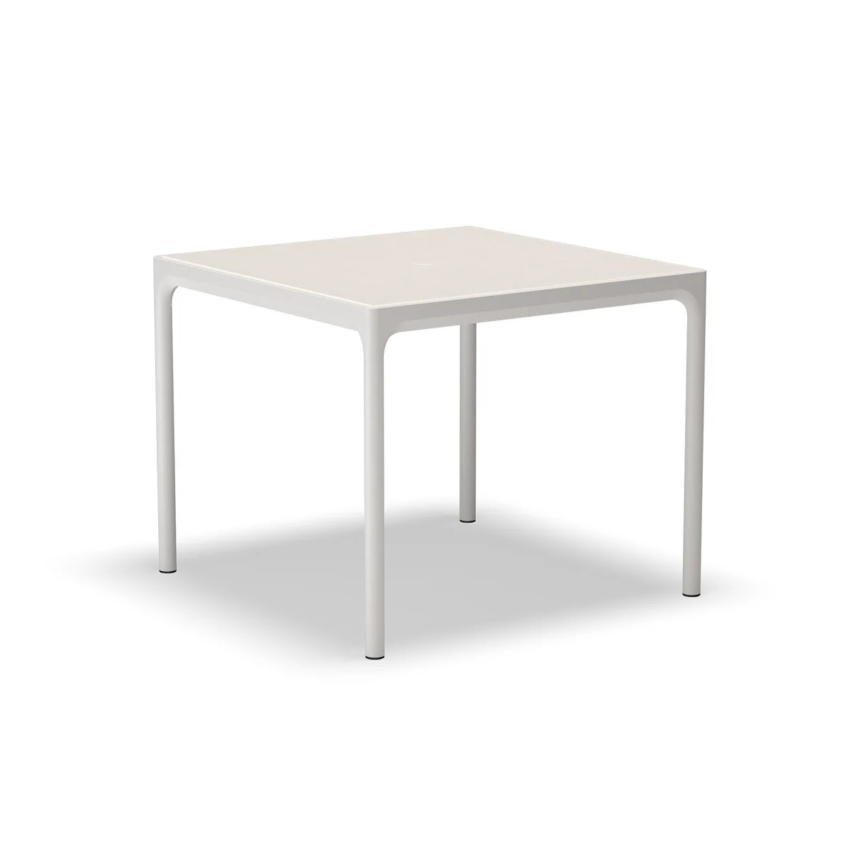 La table FOUR table d'extérieur de HOUE convainc par son élégance robuste et son design moderne. Fabriquée en aluminium revêtu par poudre et dotée d'un trou pratique pour parasol de diamètre Ø 6,0 cm, cette table de salle à manger constitue une symbiose parfaite entre fonctionnalité et style. Le profilé extrudé spécialement développé dans le cadre de la table confère une FOUR une stabilité exceptionnelle et en fait un meuble remarquablement résistant pour l'extérieur. Conçue par Henrik Pedersen, la FOUR Outdoor est la solution idéale pour des aménagements extérieurs stylés et durables.