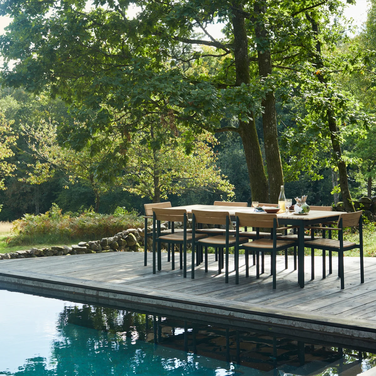 La table Pelagus table de Skagerak a été créée par le studio suédois Note Design pour la convivialité et le confort et se distingue par son expression moderne. En tant que partie de la Pelagus collection, la table est conçue de telle sorte qu'elle est aussi belle dépliée qu'en format fermé. Le plateau de table en teck a des bords arrondis qui rejoignent le châssis en aluminium revêtu par poudre. Sur demande, la table peut être agrandie à l'aide de rallonges. Elle peut accueillir confortablement six à huit personnes et peut être étendue jusqu'à quatre personnes supplémentaires grâce aux rallonges.